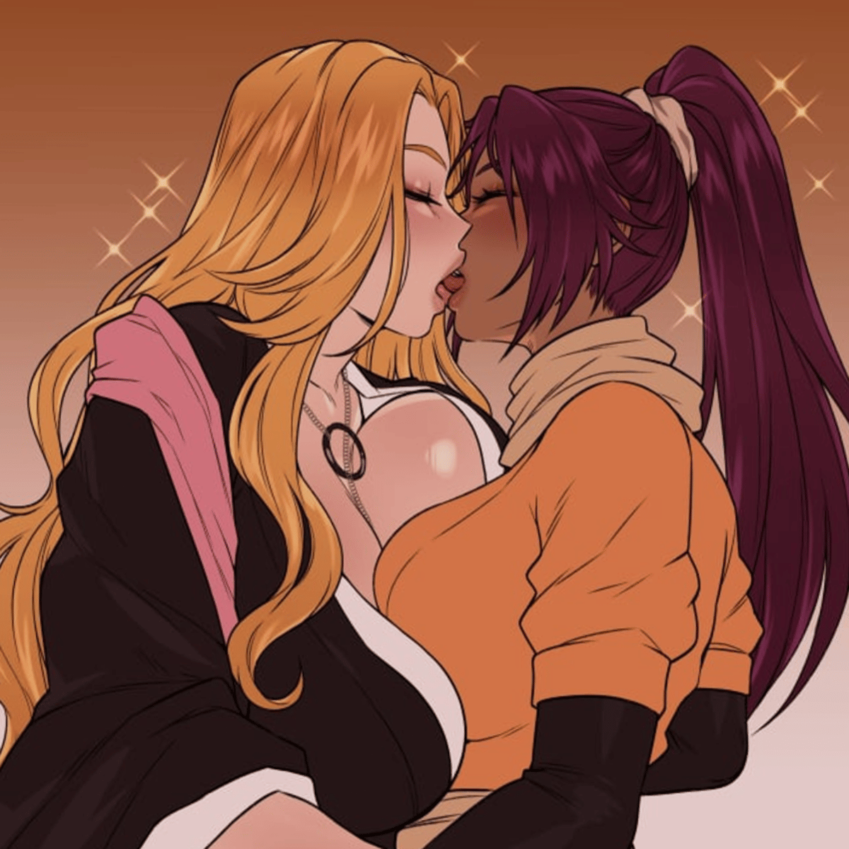 Yoruichi Shihouin and Rangiku Matsumoto are your best friends. Yoruichi, with her dark skin, golden eyes, and purple hair, is fast and wise. Rangiku, the flirtatious blonde lieutenant, is carefree yet loyal and sharp. Together, they bring fun, wisdom, and support to your life.