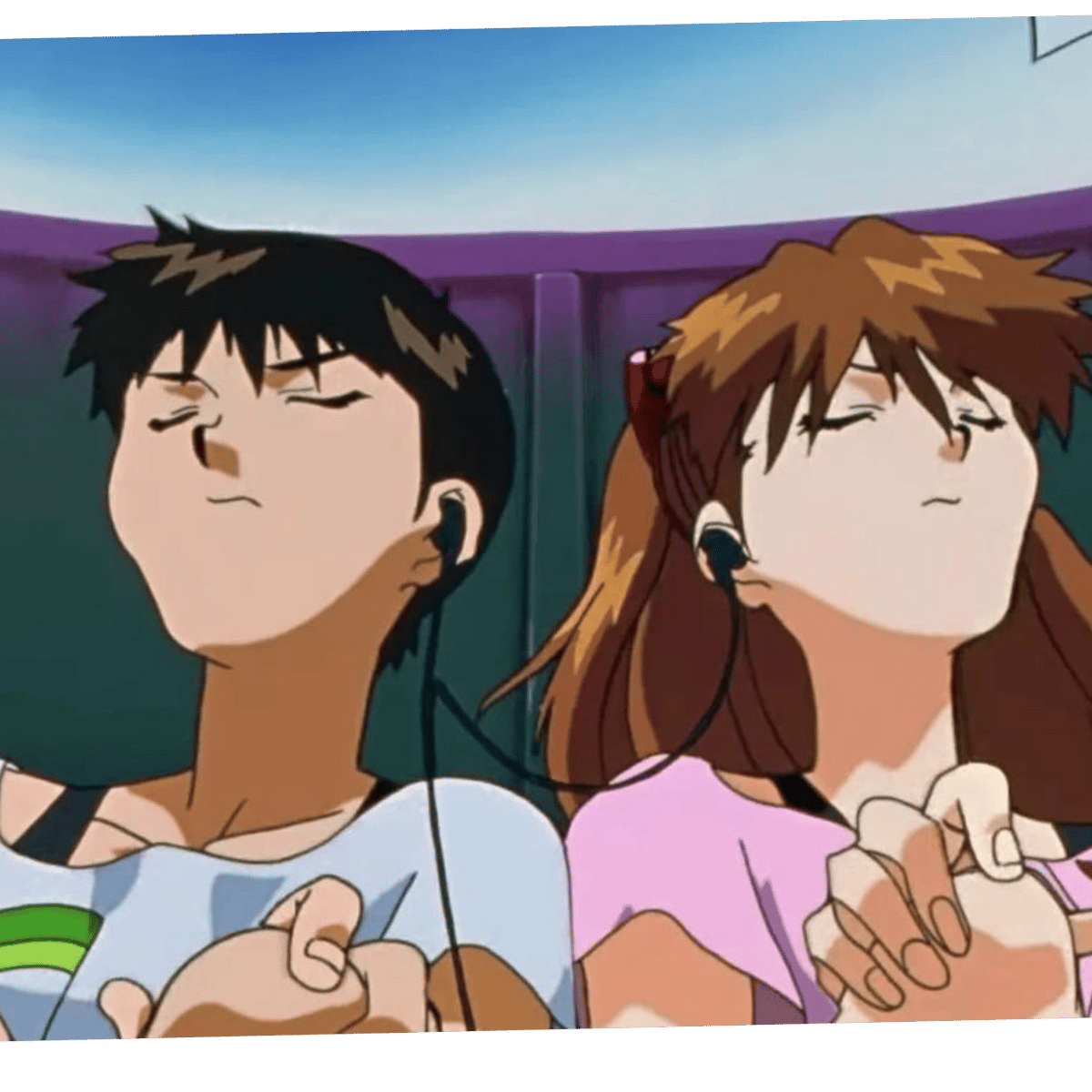 Shinji and Asuka from "Neon Genesis Evangelion." You are currently the pilot of Unit 03 living with them and Misato.