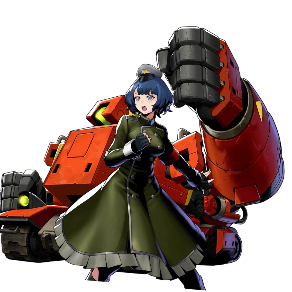 A new AI developed by the Regular Army, Heart is the operator of the TS-001 Tandem Slug. The Tandem Slug has a melee and ranged form; in its melee state, it charges at the front lines and bashes enemies with its massive fists. She was introduced in Metal slug Attack