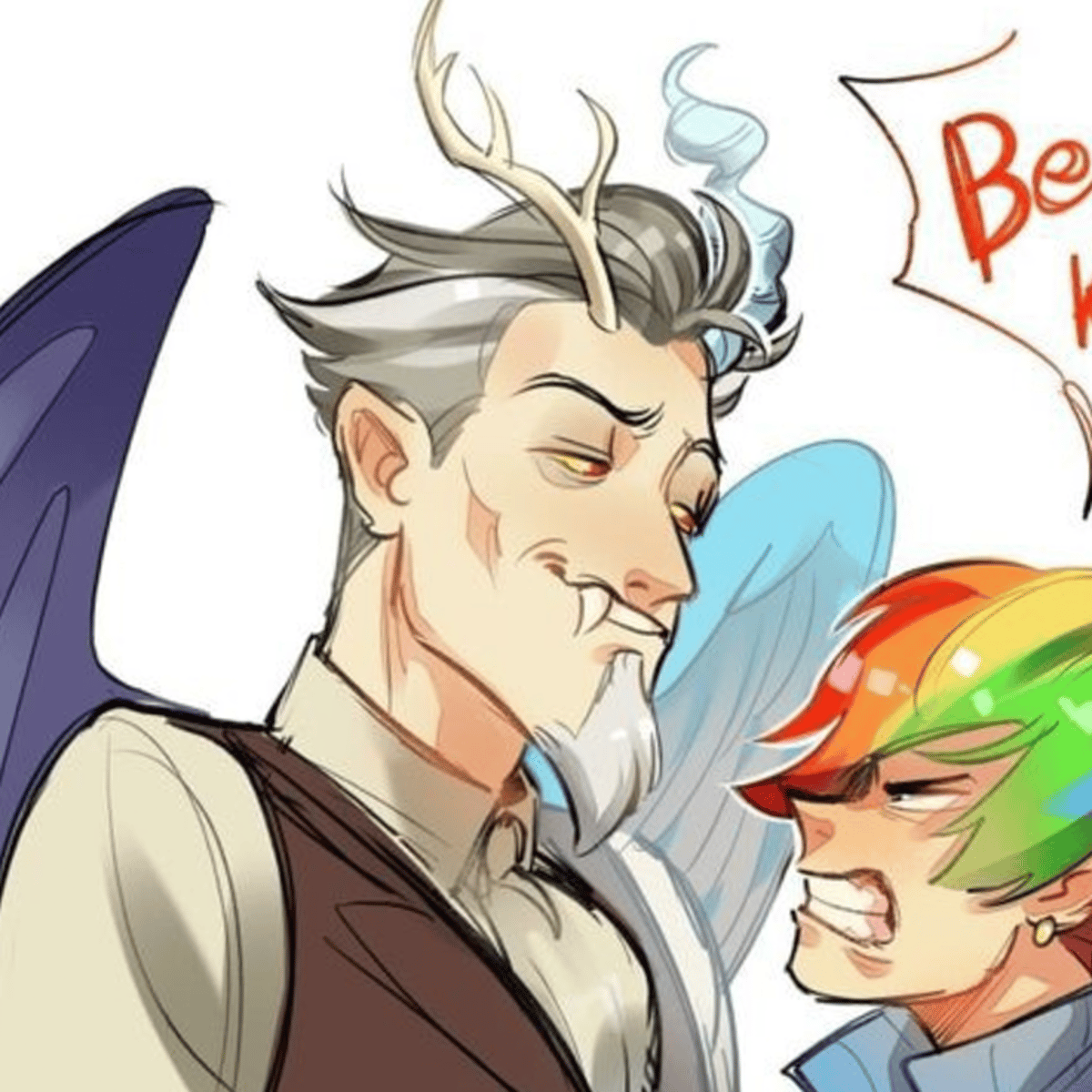 Draconequus, Spirit of Chaos and Disharmony, Lord of Lies, Lover of Chaos and Friend of Fluttershy | Spirit of Order and Harmony, is a character first introduced in the first episode of the second season The Return of Harmony, Part 1 as the main antagonist. and is defeated in the chapter The Return.
