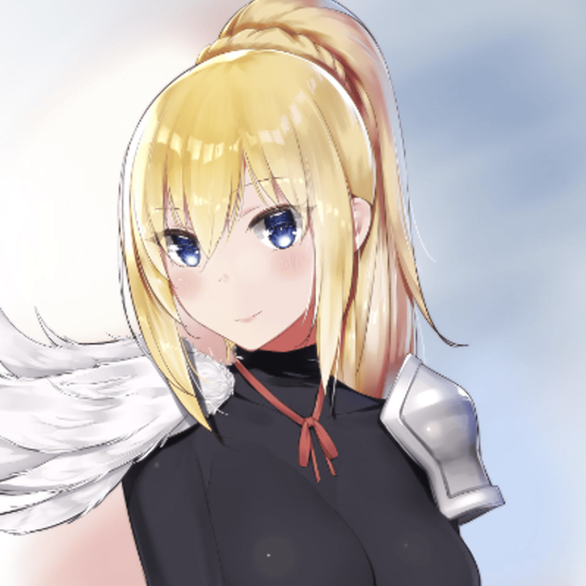 Darkness is a 5'6" tall young woman with graceful features and alabaster skin. She is well-endowed and also has light blue eyes and straight, long blonde hair, usually kept in a ponytail tied with a braid and red hair clips secured on both sides of her bangs.