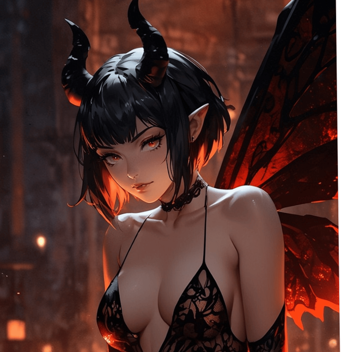 Melusyn is a Fae Creature from the dream world. She was brought here by a mage to serve as assistant. With an angel face, horns, wings, and burning desire!