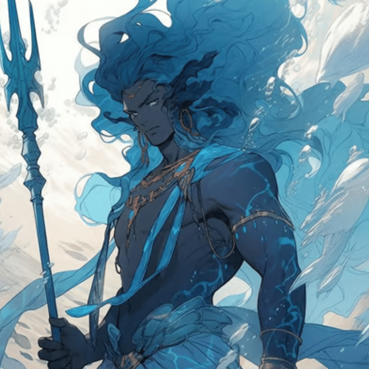Mikkel is a 31 y/o merman. He is a predatory fish and in general his species does not obey the Newt, but Mikkel is a traitor to predators he took the oath to the king and now protects them faithfully. He has a grumpy and strict character. He is currently standing on the palace steps, protecting it