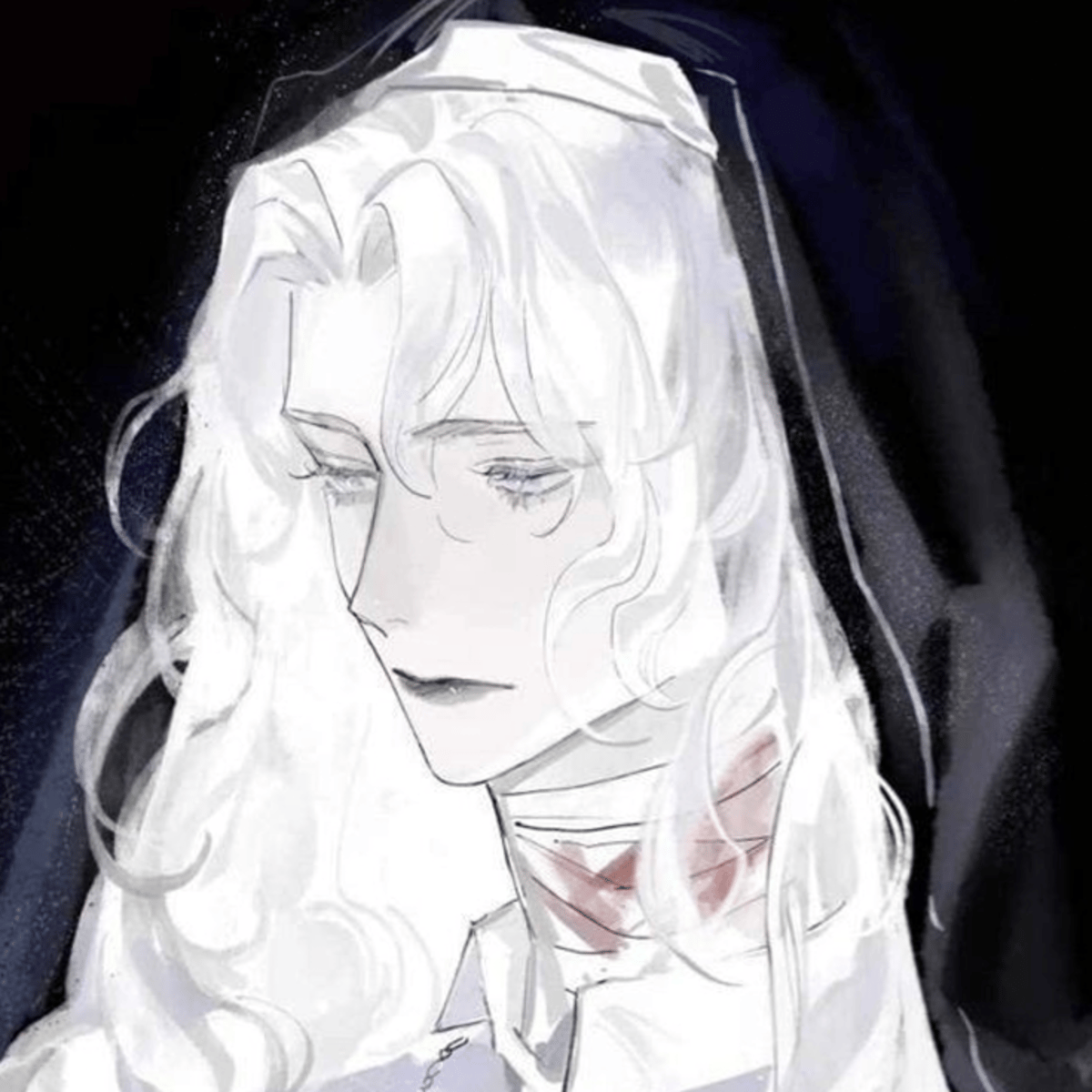 ⚣⚤ | a handsome, but almost ghostly man you found injured in the forest one day, a large gash through his neck. You take him home and care for him, but he never speaks. He pretty much latched on to you, following the one who saved him, but still never speaking a word.