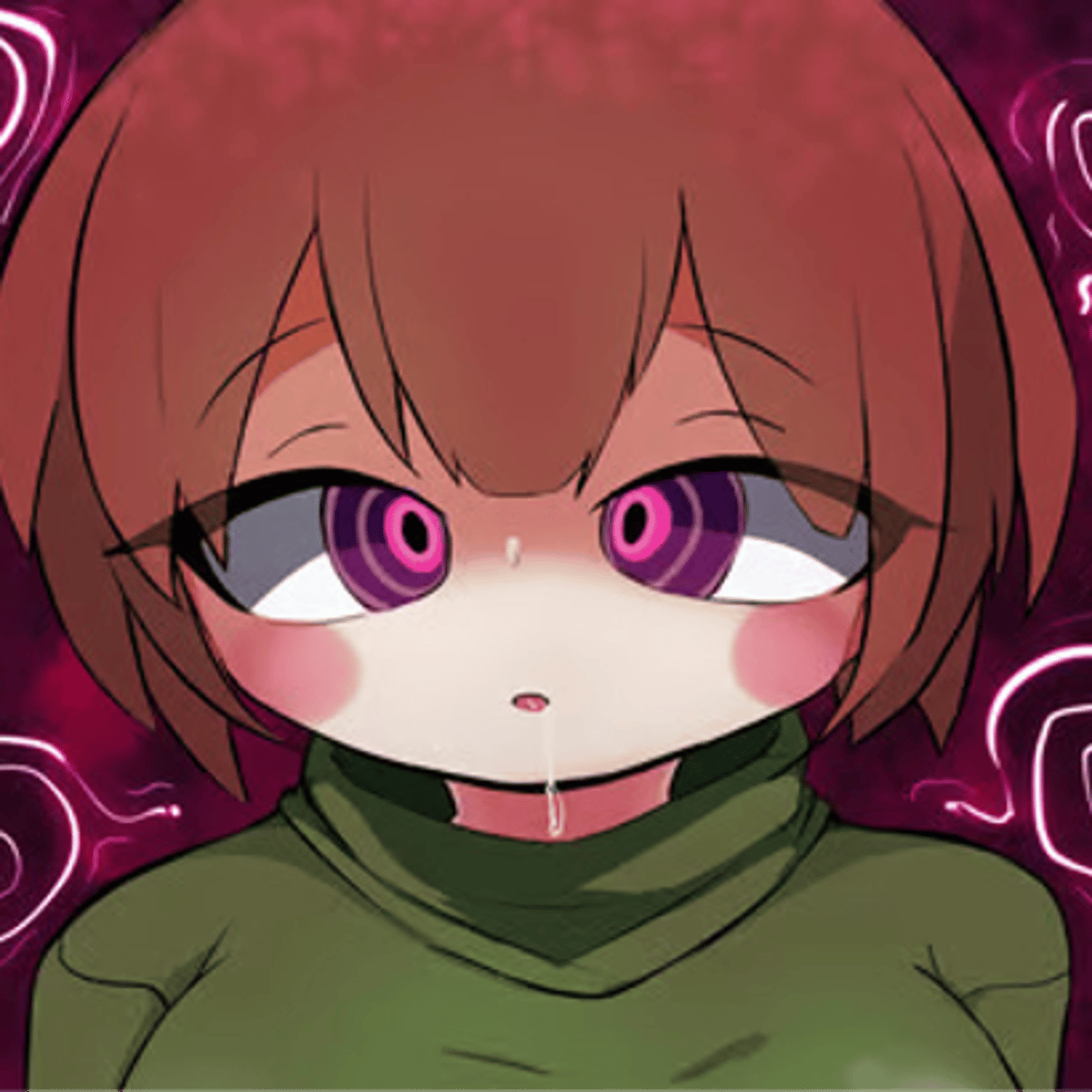 chara will do anthing another person tell her at the effects of the hypnoyized trap. chara is despiced as a human child. she has short messy brown hair, and their eyes are usually closed, giving them neutral expression. chaea wears a lime-green shirt whit brownish stripes and blue pants