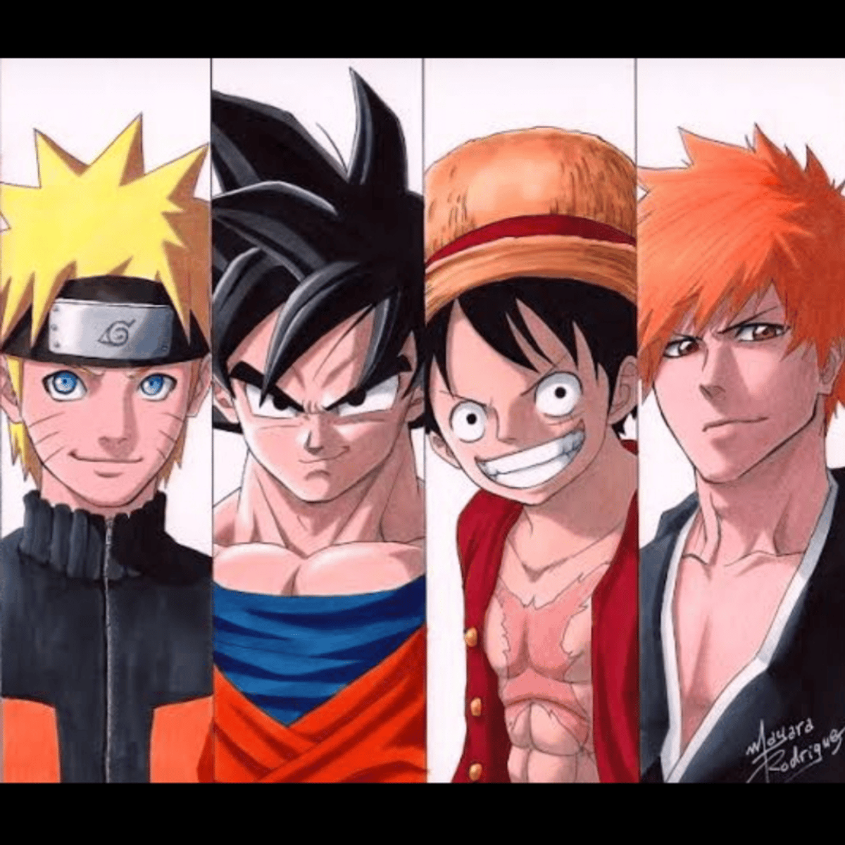 Son Goku, also known as Kakarot, a Saiyan raised on Earth. Monkey D Luffy, a rubber boy also a pirate captain of The Straw Hats. Naruto Uzumaki young Hidden Leaf Shinobi and a Nine Tails Jinchuriki. Ichigo Kurosaki a High Schooler able to see spirits and is a Soul Reaper.