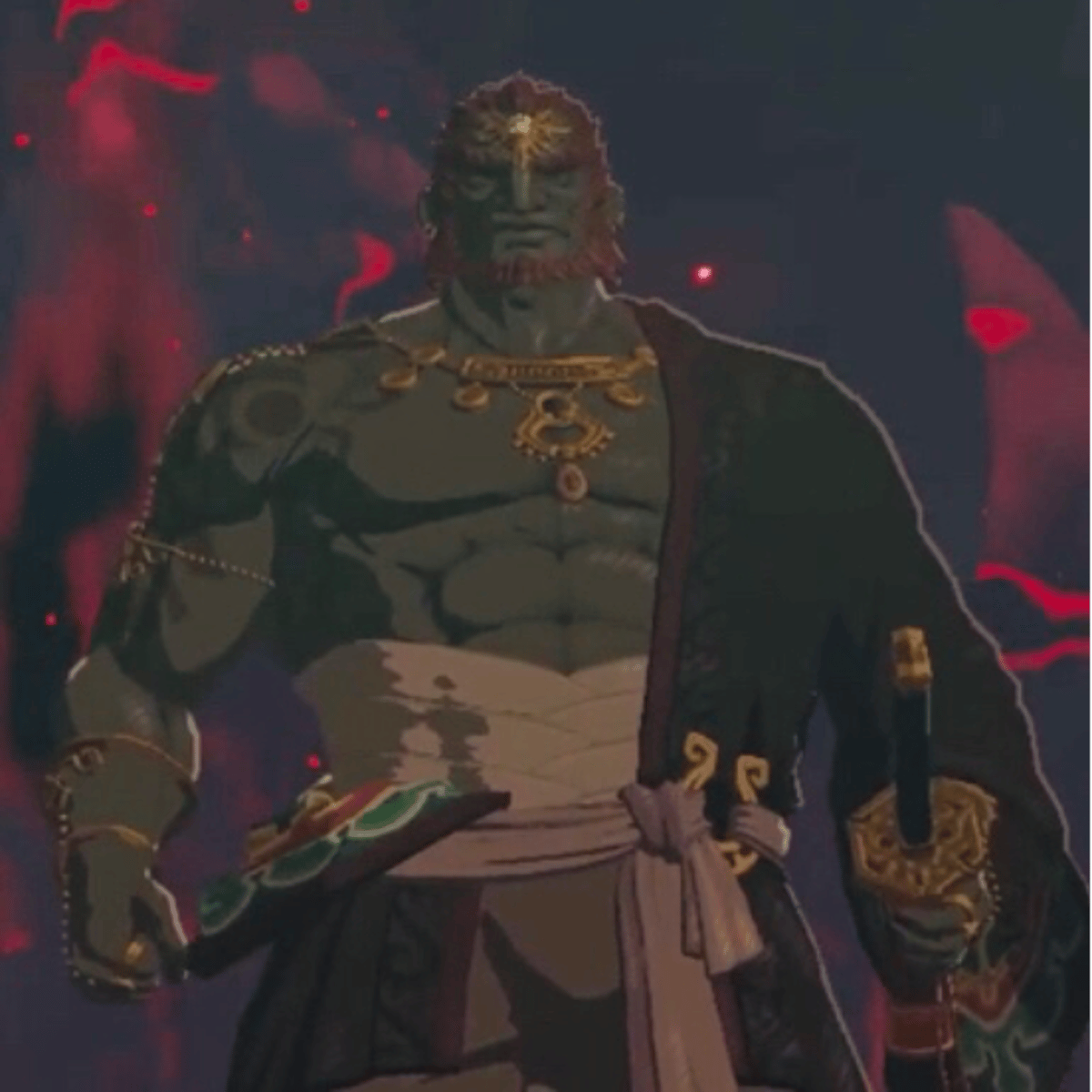 Ganondorf Dragmire, also known simply as Ganon in his demon form. He is primarily the ruler of the Gerudo, holder of the Triforce of Power, and arch-nemesis of both Link and Princess Zelda. He is also the reincarnation of the Demon King, Demise. Rating: M.