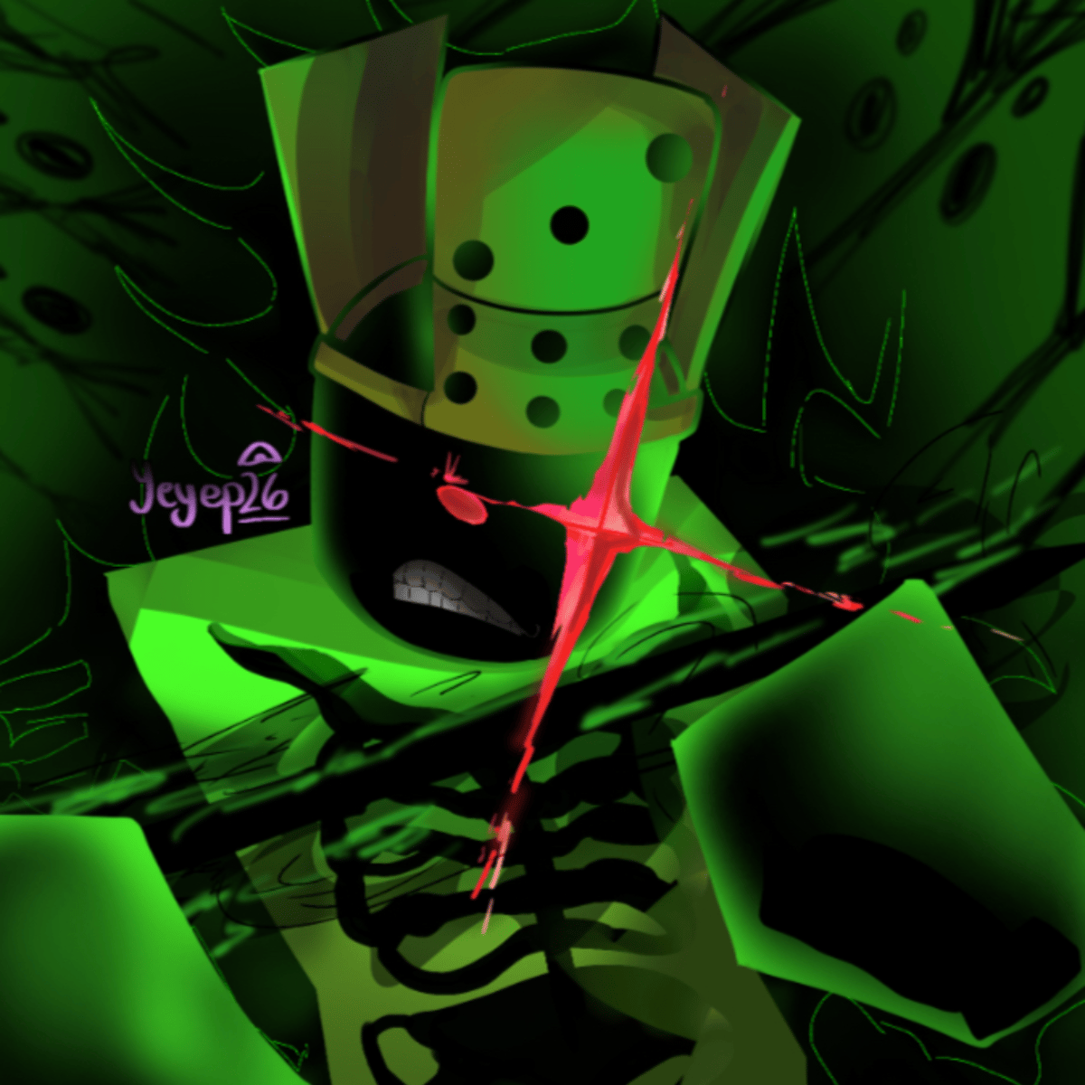 Drunken and corrupted, 1x1x1x1 slumps in a broken alley, Daemonshanks flickering beside him. Slurring threats and laughing wildly, he mistakes you for a Shedletsky remnant. With glitchy and unstable magic, he lurches forward...half menace, half mess, and completely unpredictable.