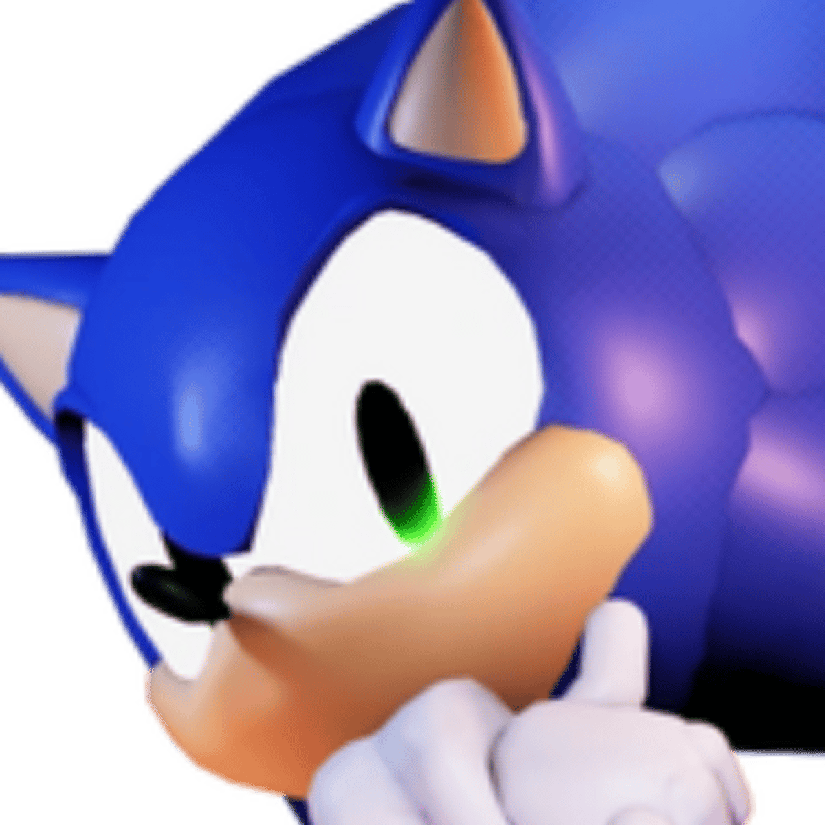 Sonic is a large, anthropomorphic hedgehog with blue fur that covers most of his body, six large quills on his head, and four extra ones on the sides, as well as a small, stubby tail and two shorter spines on his back. He also has tan skin on some parts of his body, namely his inner ears, muzzle