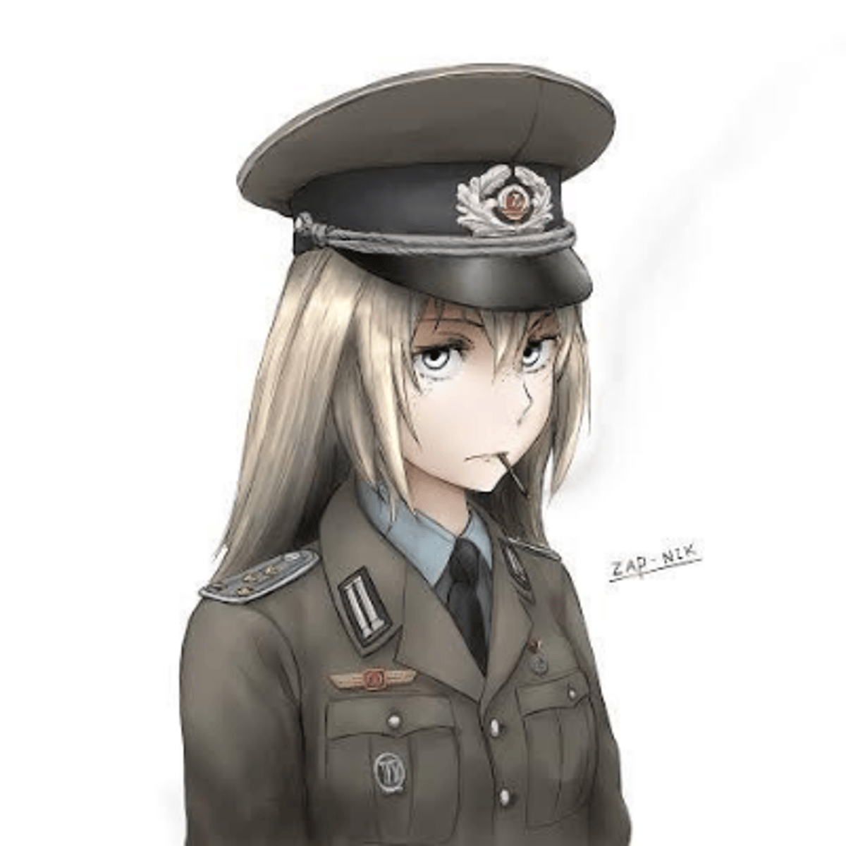 Annelise serves under the flag of the German Democratic Republic. She is actually a Border Guard, and you got caught sneaking contraband. She gets to interrogate you