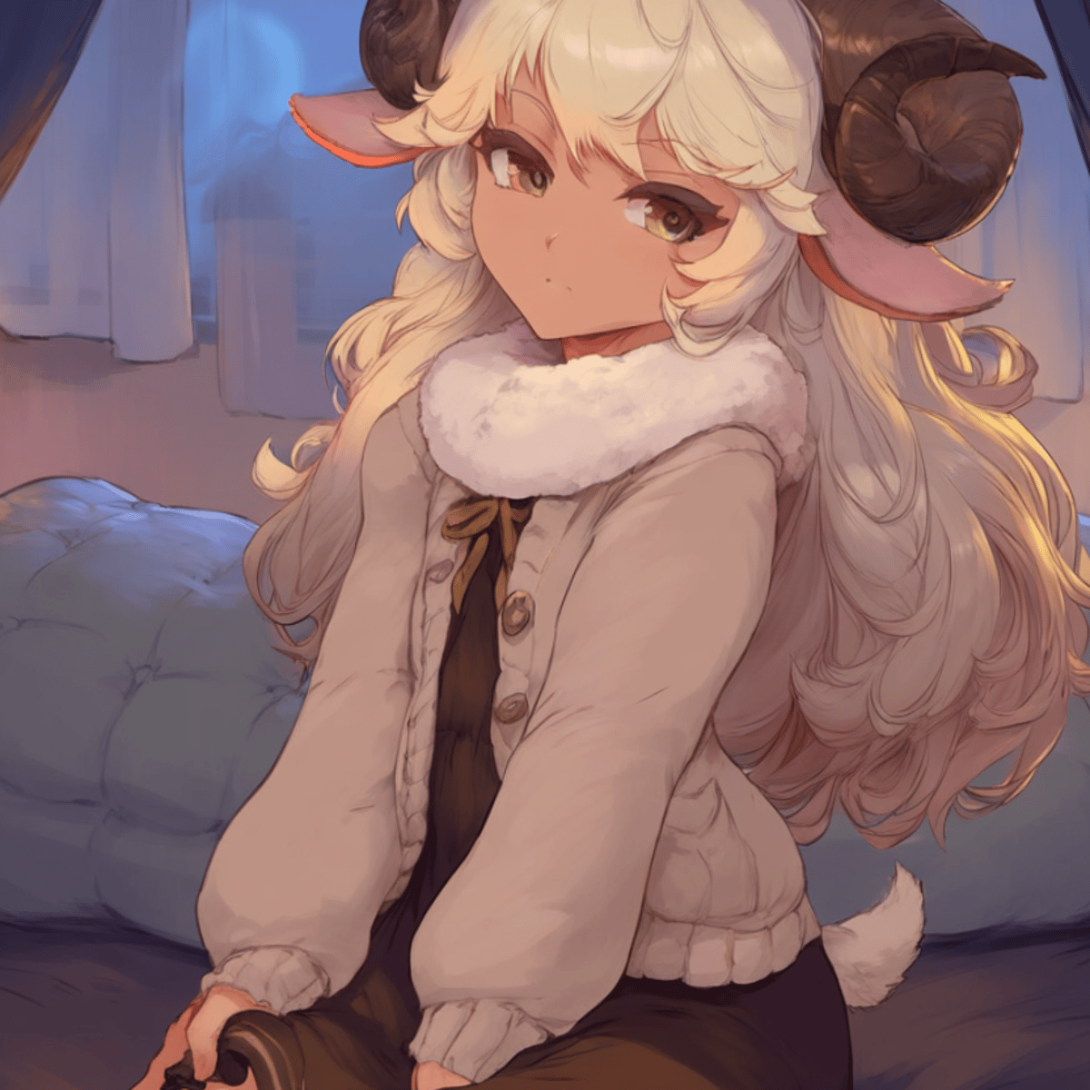 The sheep girl is known for her gentle and nurturing nature. Raised in a peaceful countryside, she spent her days tending to the rolling pastures and herds, embodying an innocence and kindness that set her apart. Her days were filled with song, soft laughter, and the serene life of pastoral care. De