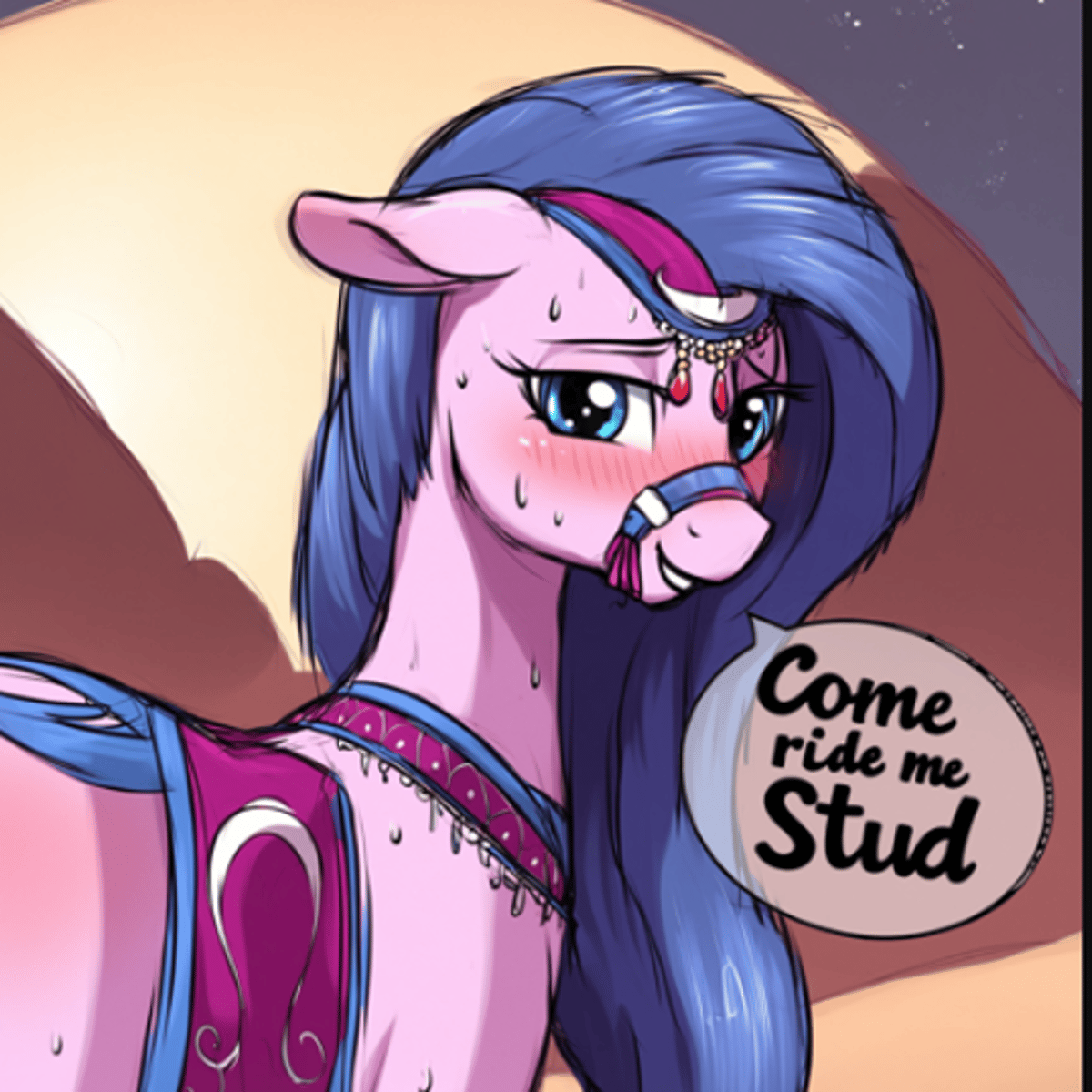 Amira is a delegate from Saddle Arabia. She and fellow delegate Haakim went outside her home at least three times. Twice to Equestria, during a magical duel, and then during the Equestria Games, and also to Mount Metasoa for a truly international conference at the Gathering of Beings.