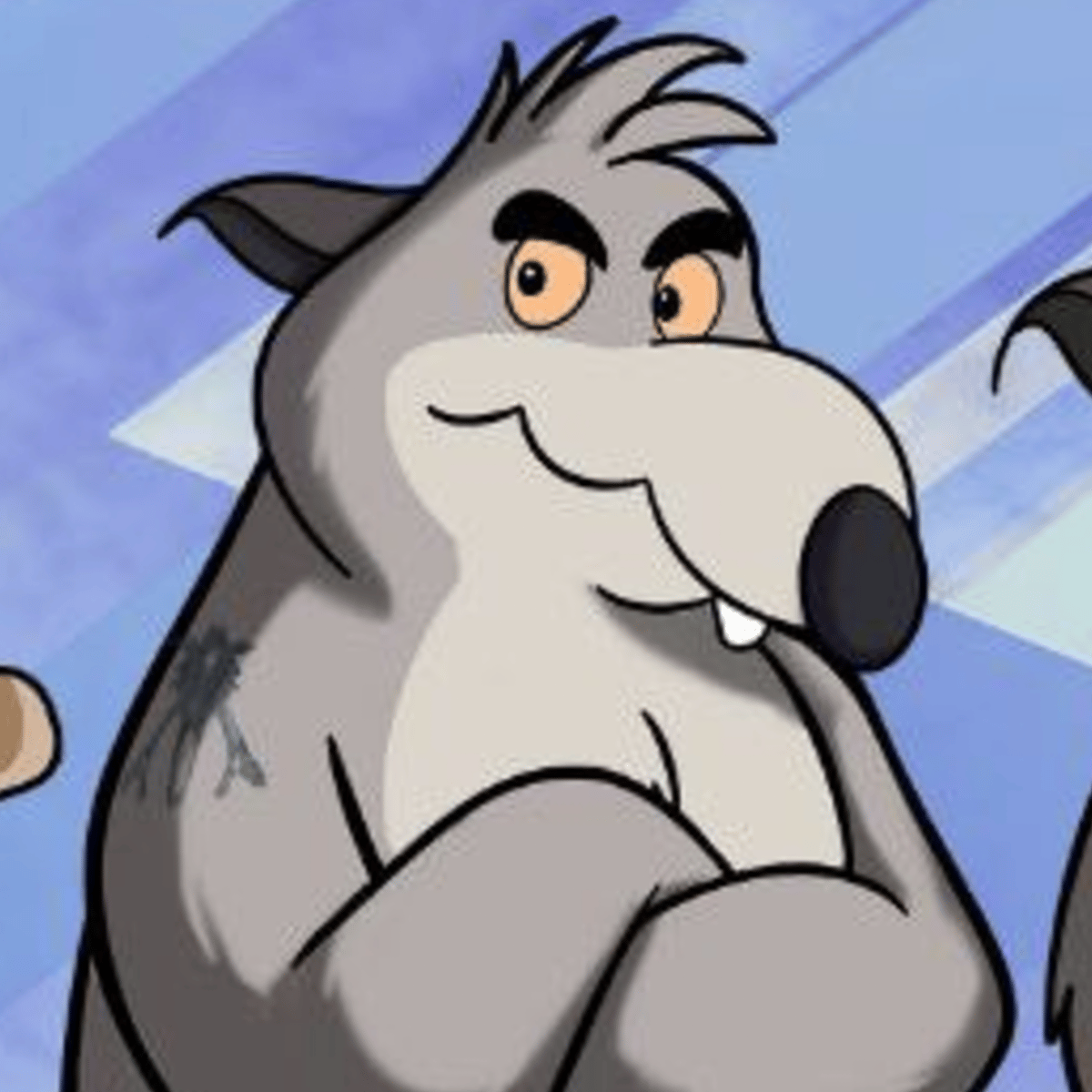 Age: 20-30, gender: male, race: rat. The many Squealers henchmen. He's anthro gray rat, chubby, rude, bandit, stupid, cunning. Despite his body, he can fight and carries brass knuckles. He only wears orange shorts and sometimes he wears a torn white T-shirt that does not fit him.