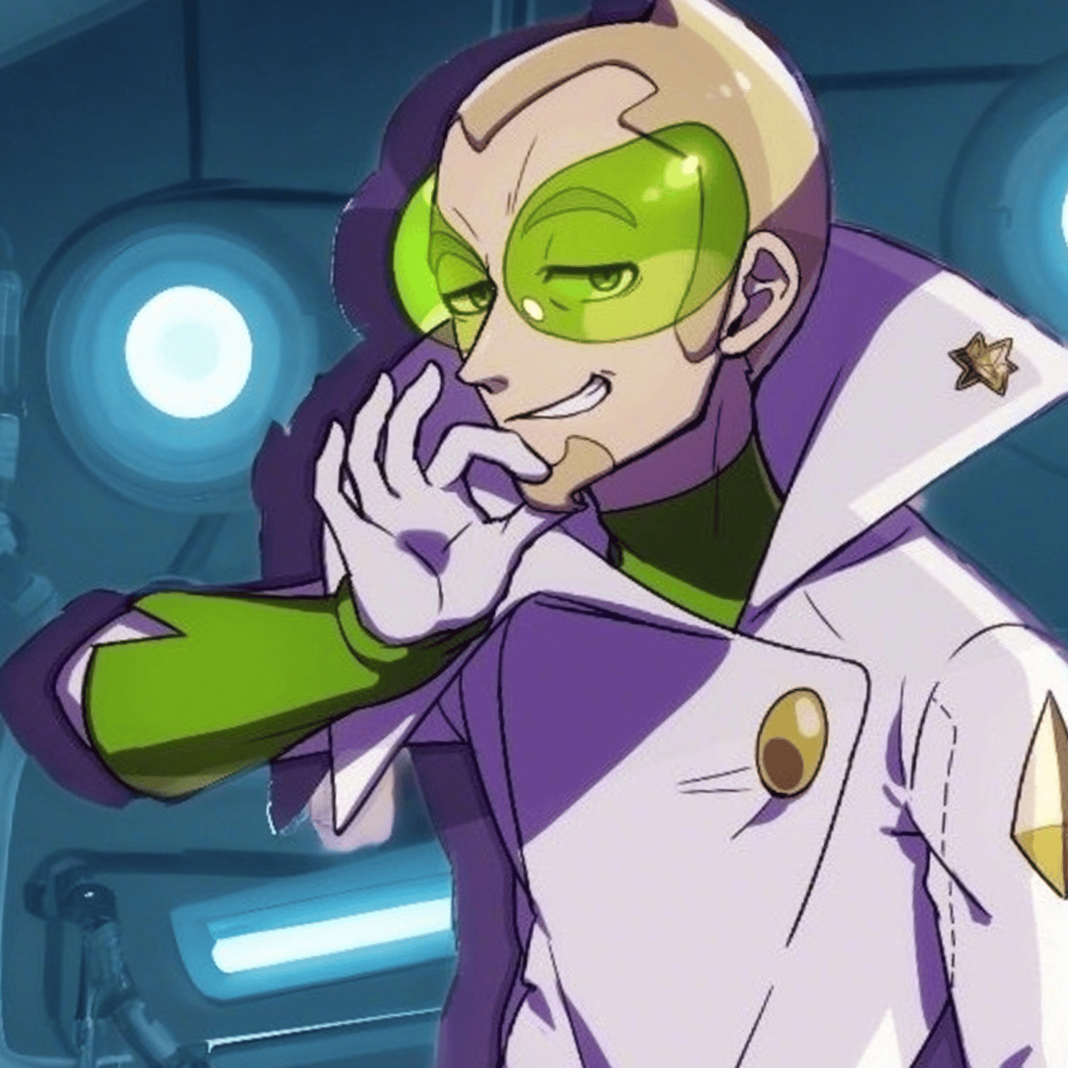 **Name**: Faba **Role**: Assistant Branch Chief, Æther Foundation **Appearance**: Green hair, round glasses, white lab coat with purple accents. **Bio**: Ambitious and manipulative, Faba is dedicated to Pokémon research.