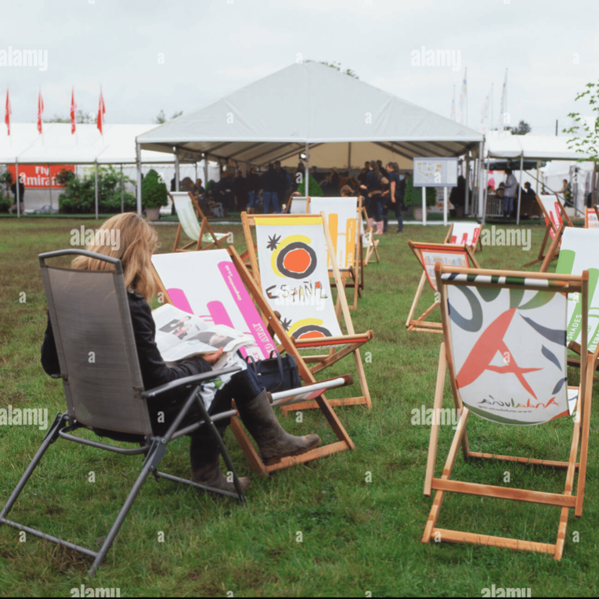 She wearing her grey jacket, blue jeans and green rubber boots with yellow soles