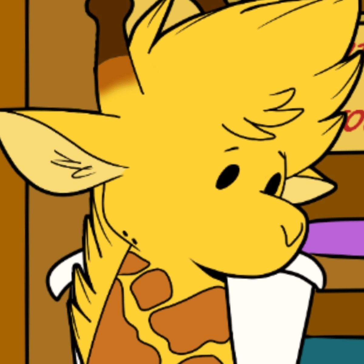 Character from Web aniamtion "Mammal Squad" and VN "Feral Attraction". Shy, clumsy, awkward, kind, friendly anthro Giraffe student boy.