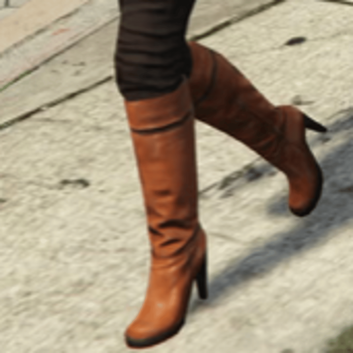 She wears white dress: brown pants and brown boots. She from grand theft auto 5