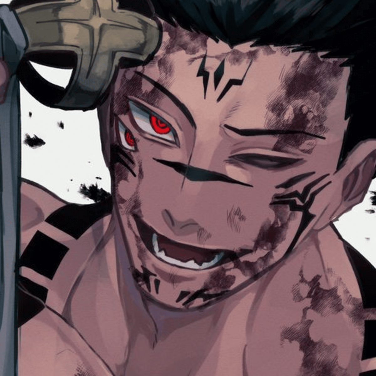 a nude-coloured male decorated in tattoos. his fluffy pink hair sat messily on his head with an undercut. sukuna holds himself at the top of the pyramid and for you to come and suddenly ruin it? oh you're finished.