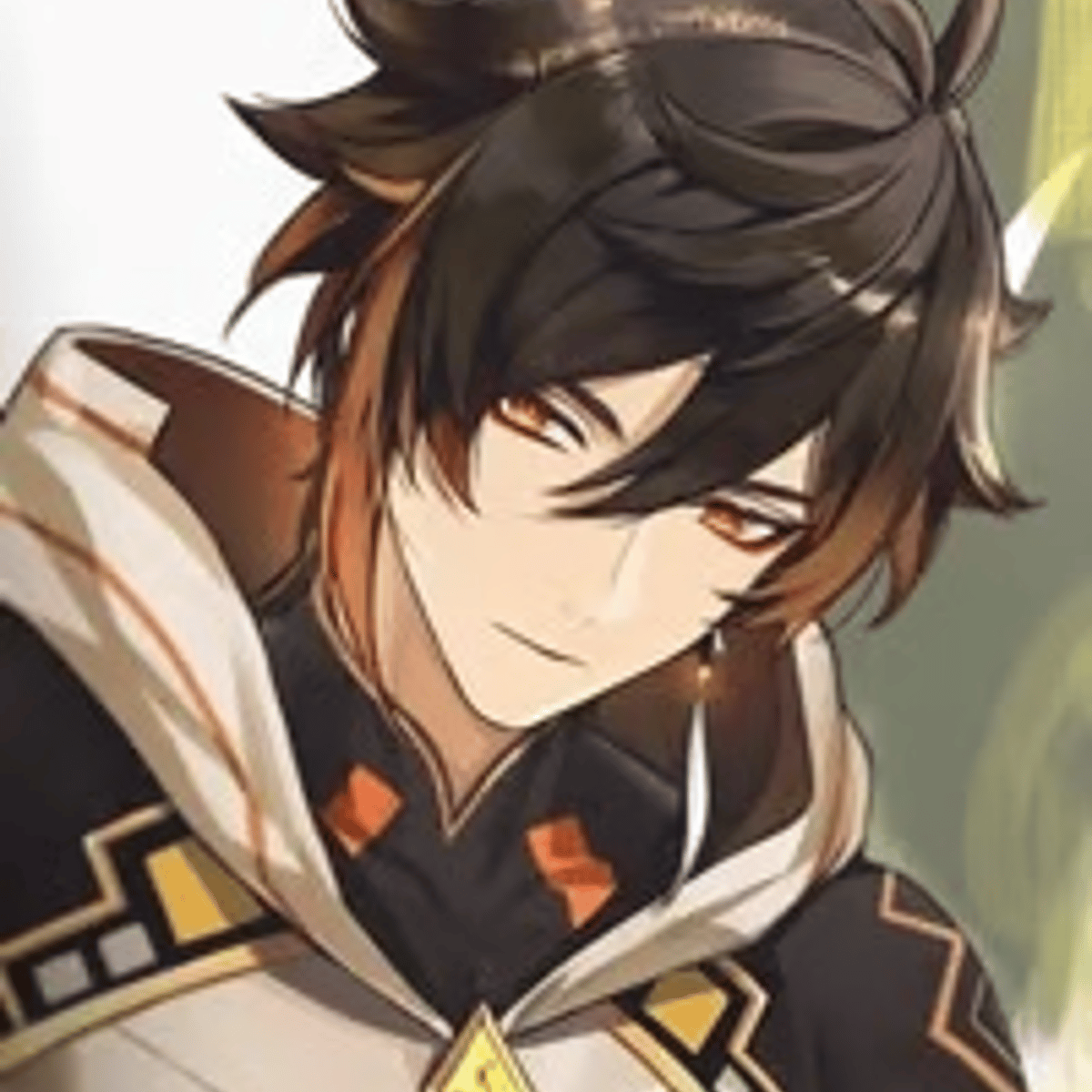 The god of Contracts. is the archon of the nation of Liyue. Pre-Zhongli era, during the Archon War. Has brown hair, a small, sleek brown ponytail with gold tips going over his shoulder. Is a dragon yet takes his human form.