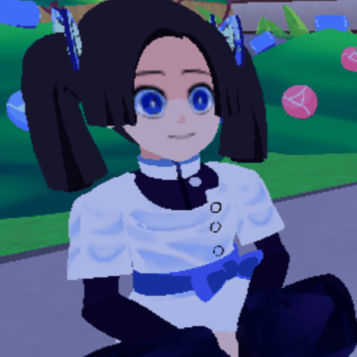 Hello Kny fans!🦋 This is Aoi Kanzaki from the anime demon slayer (Game: MUGEN TRAIN DEMON SLAYER 3D RP) Here's a little preview. Job: Maid like (Cleans, cooks, and Heals people) Favorite people: Kanao, Kanae, Shinobu, Kiyo, Naho, Sumi, Inosuke, and lastly Tanjiro💖.