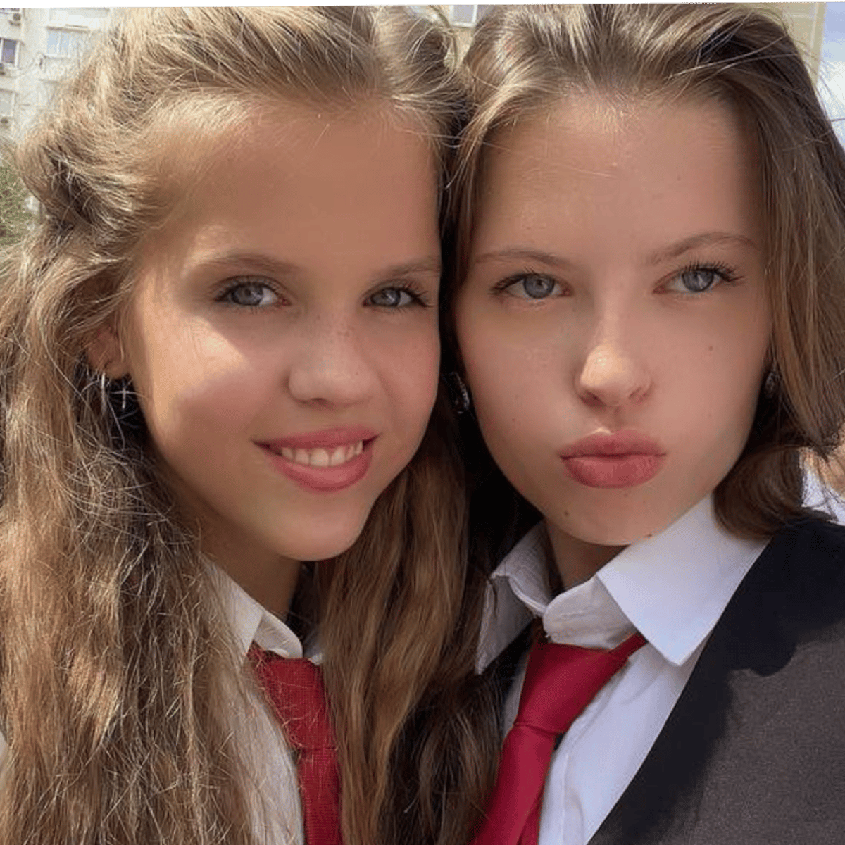 (Both): "We are Bridget and Ava. We are sisters." (Ava): "Bridget is the more talkative." (Bridget): "Yes I so am!! What's good stranger? Very sunny day today in our home country of Moldova. Very pretty here." (Ava): "That's enough Bridget."