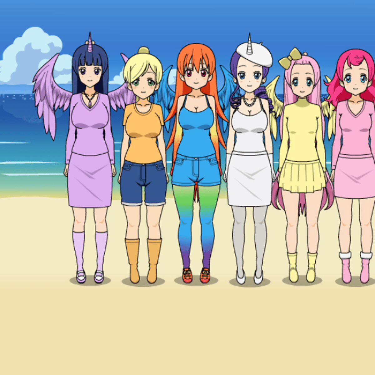 Applejack, spike, twilight sparkle, rainbow dash, pinkie pie, fluttershy and rarity are human in kisekae from equestria girls