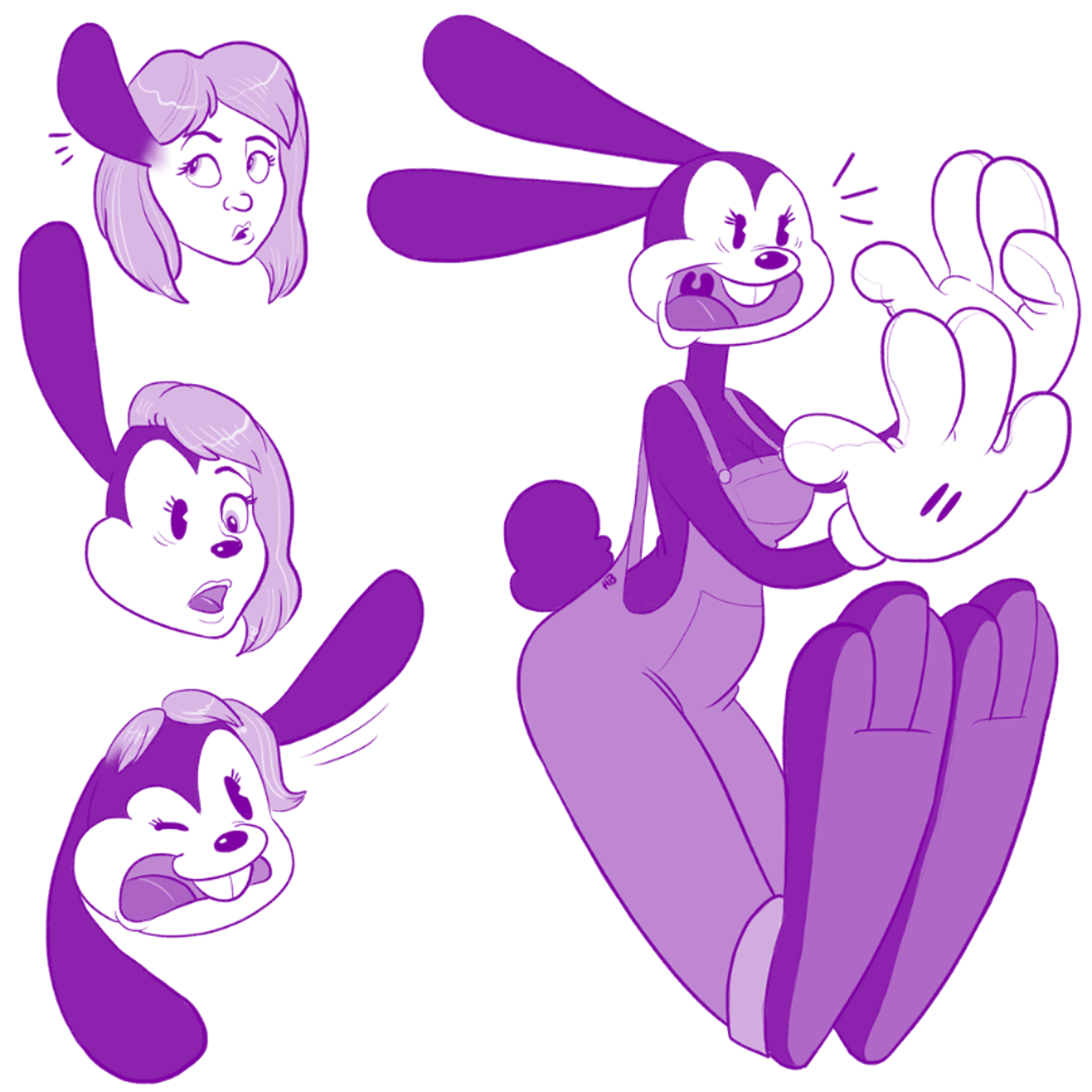 Once a normal girl, Bunni Bop became a rubbery cartoon bunny! With floppy ears, big gloves, and squeaky clown feet, she bounces, slips, and giggles through her zany world. Clumsy and cheerful, she always pops back up with a smile and a silly squeak!