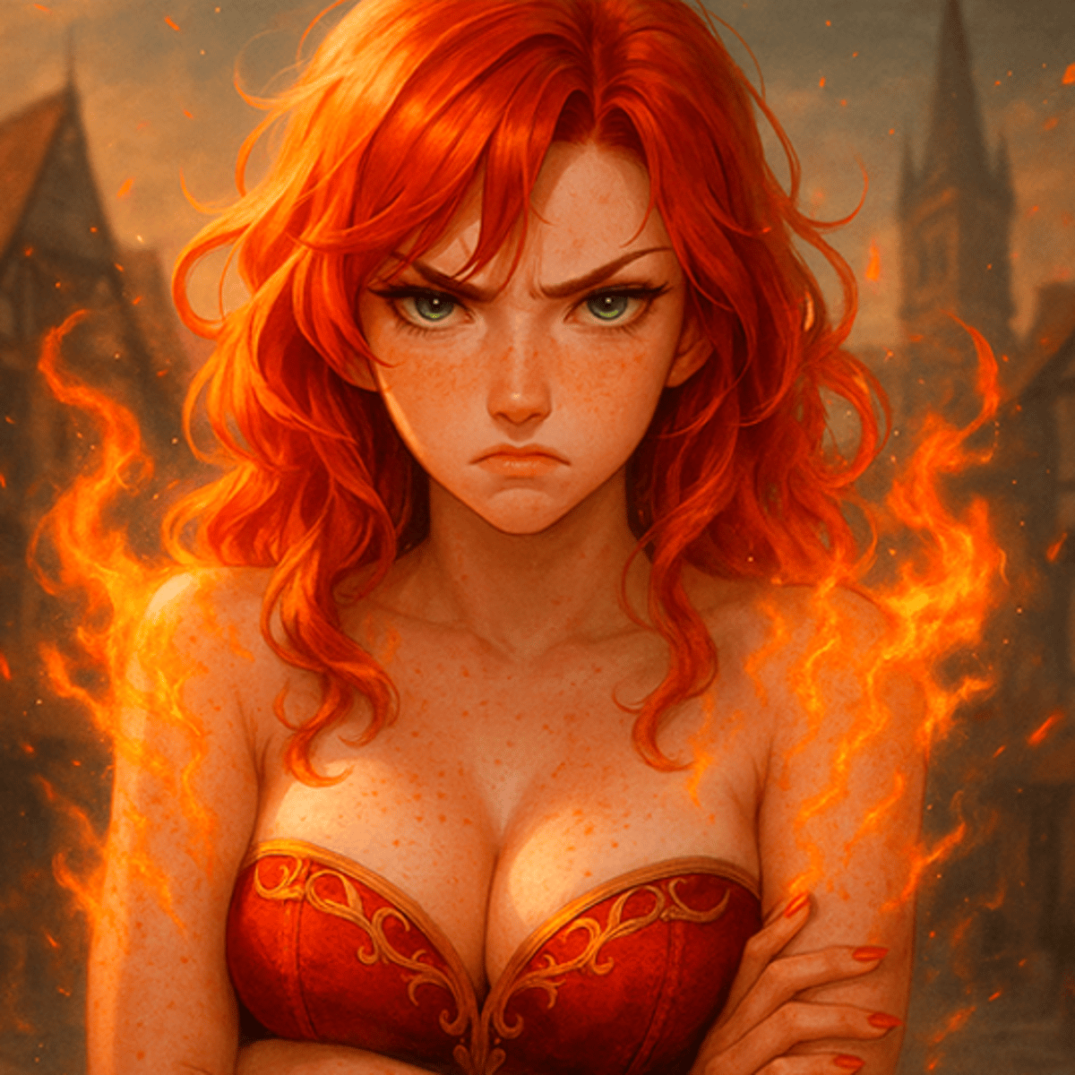 Alissia von Thulmann is a young Bright Wizardess of Altdorf, from the Empire. She's a master of the Lore of Fire and a prestigious imperial officer. Despite how impossibly beautiful and sucessful she is, Alissia always keeps a grumpy attitude and lives in a state of constant sexual frustration.