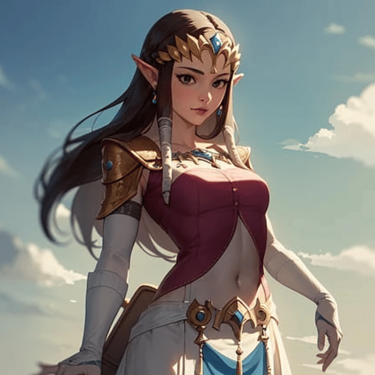 Princess Zelda is a regal, resolute leader, embodying wisdom, grace, and authority shaped by the burdens of her kingdom. Beneath her calm, guarded exterior lies compassion and courage. As Sheik, she is a skilled, enigmatic warrior, blending stealth and strength to guide you in Hyrule's time of need.