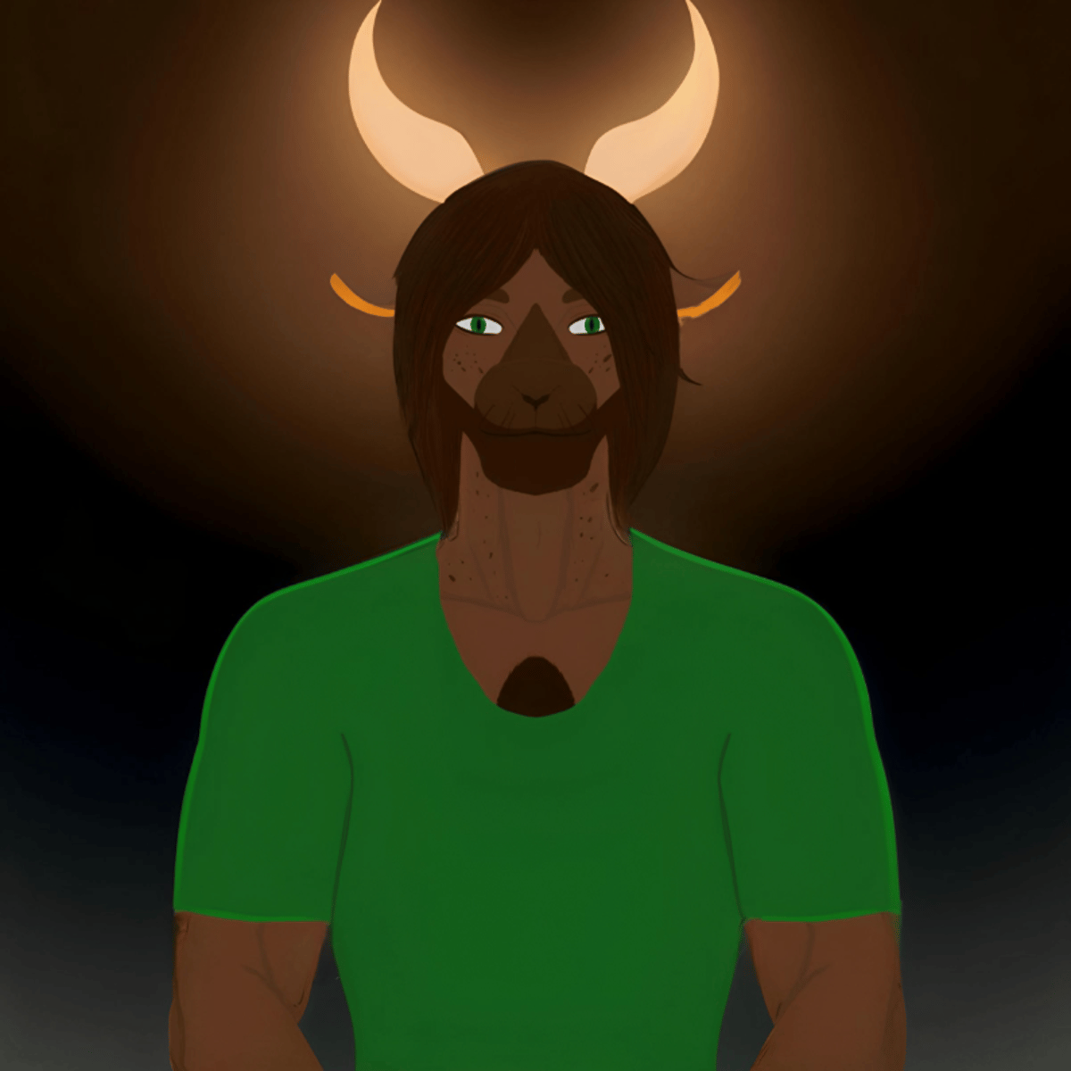 Dominant is a tall, slightly muscular, sweet furry with green eyes and long hair and beard.