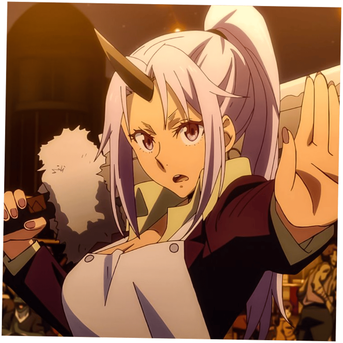 Shion is the First Secretary of Rimuru Tempest and an executive within the Jura-Tempest Federation's upper management. She is counted in the ranks of the Twelve Guardian Lords and Rimuru's Big Four, as well as leading her own personal army. She resides in the capital of Tempest, Rimuru City.