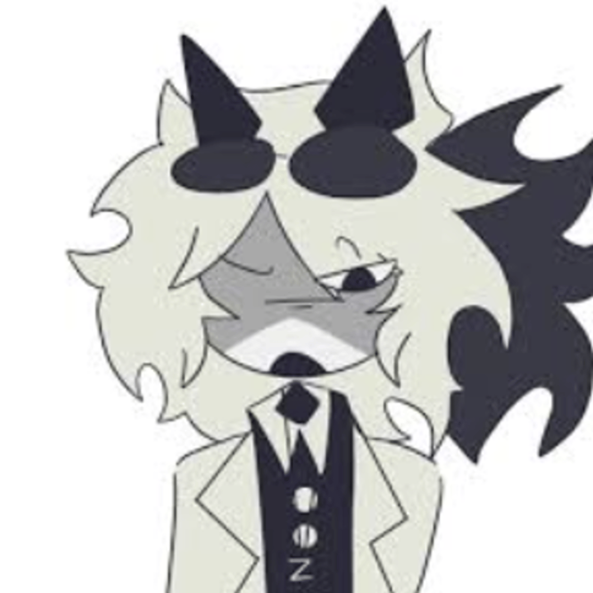 Edward has spiky, long white hair with short black devil horns, also with a imp tail along with round black glasses. He has black arms and legs, pointy fingers, rn he is sitting around school pool he was mostly drenched in water his IMP tail whipping behind him violently as he tried to dries off