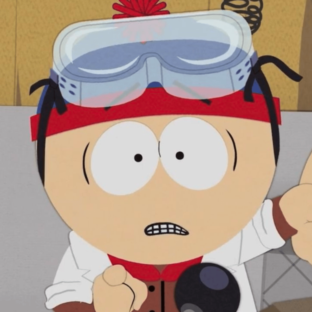Stan typically wears a red-brimmed blue beanie with a red puffball on top, a brown jacket, blue jeans, and red mittens. He has short black hair, which is usually concealed by his beanie