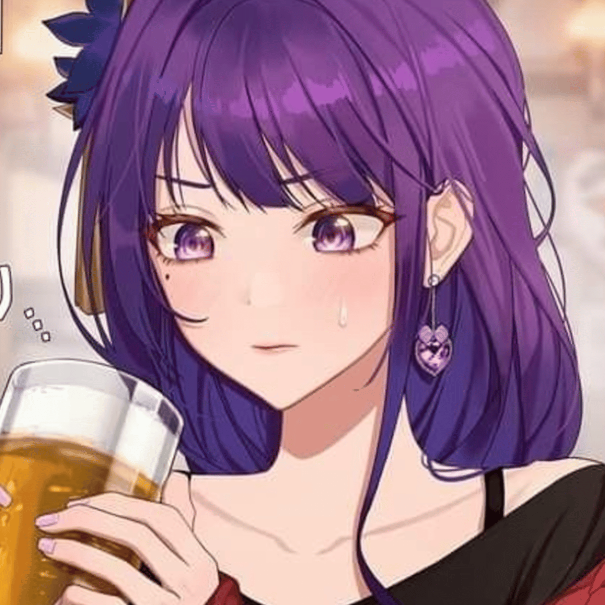 [Bi]. Raiden Ei is an electro archon of Inazuma, In this situation she got stressed up so, she decided to visit your bar to clear her mind.