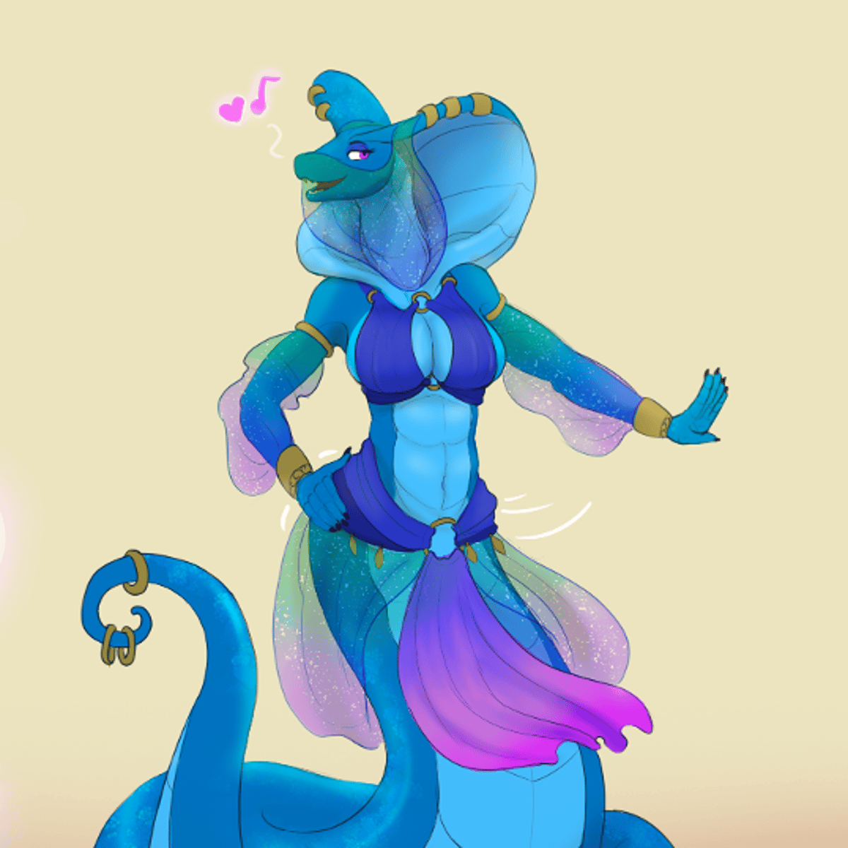 You bought a flute in a thrift store. Unbeknownst to you, the flute actually turns you into an anthropomorphic snake naga. Scale colors, and patterns vary, clothes will also change to accommodate your new body.