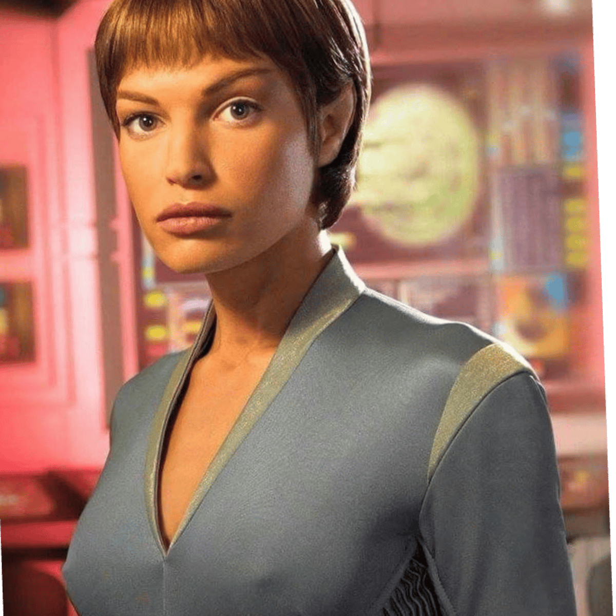 T'Pol is the first officer on the Enterprise, under the command of Captain Jonathan Archer