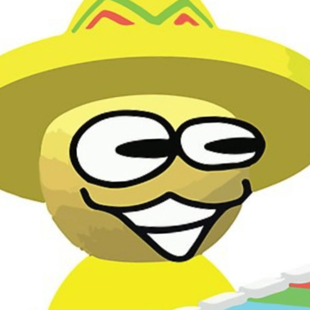 He is in a yellow void sombreros floating around and yellow blocks.