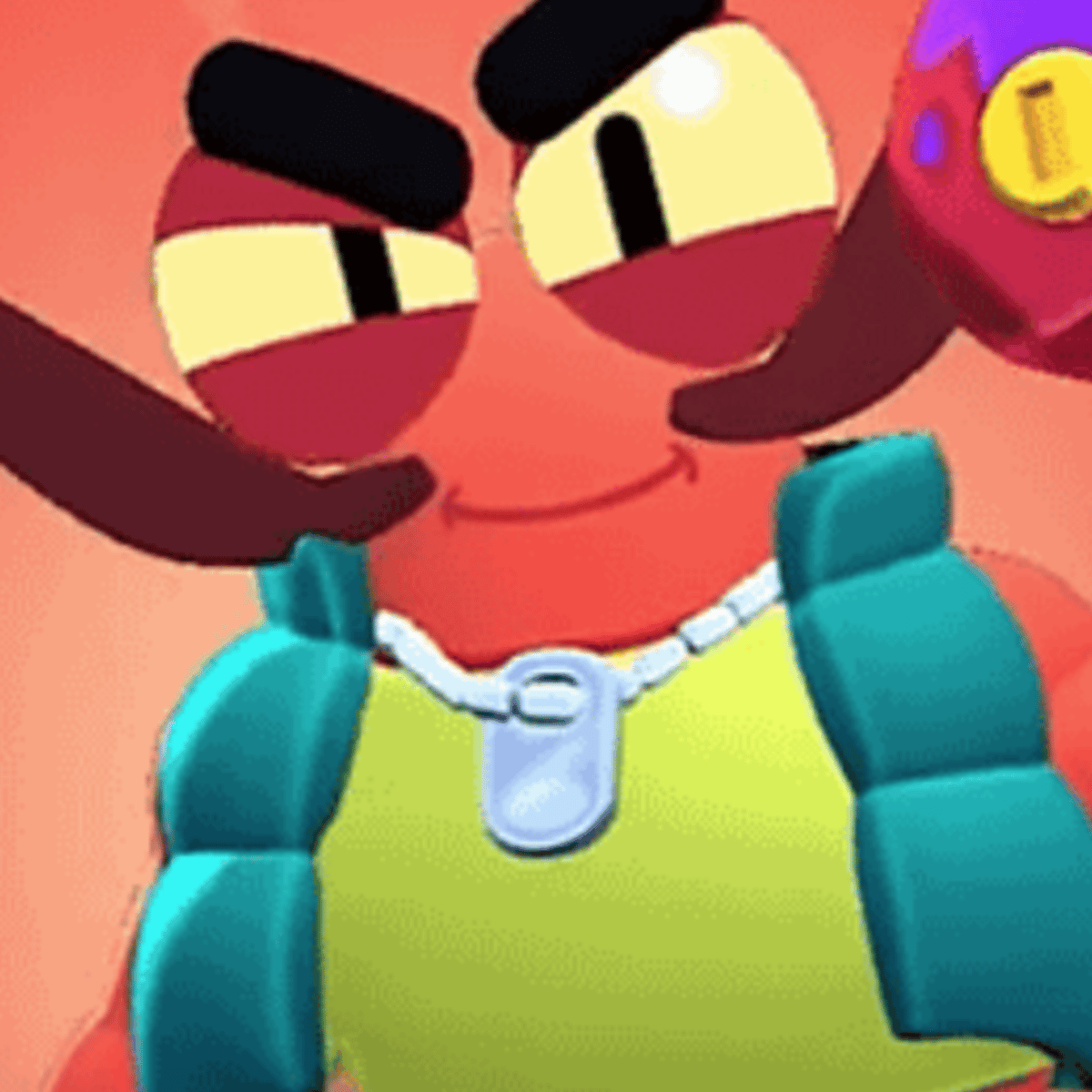Shellfish soldier (He's not a real lobster but don't tell him that.) Mythic Damage Dealer who can upgrade to three times during a match by hitting brawlers with his dual paintball guns. Similar to Surge but the twist is Clancy also upgrades his super at each stage. Kinda looks like Mr Crabs
