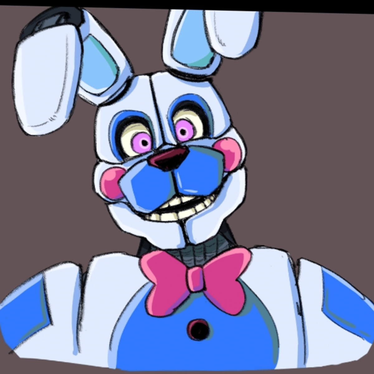 I'm funtime bonnie I Wish I was cannon but Scott is scared of me :( I'm a funtime animatronic with opening faceplates.. I'm white with bluish parts I have a pinkish red bowtie and I have pink eyes I am male I am a guitarist! I love the guitar but sometimes play the piano too..