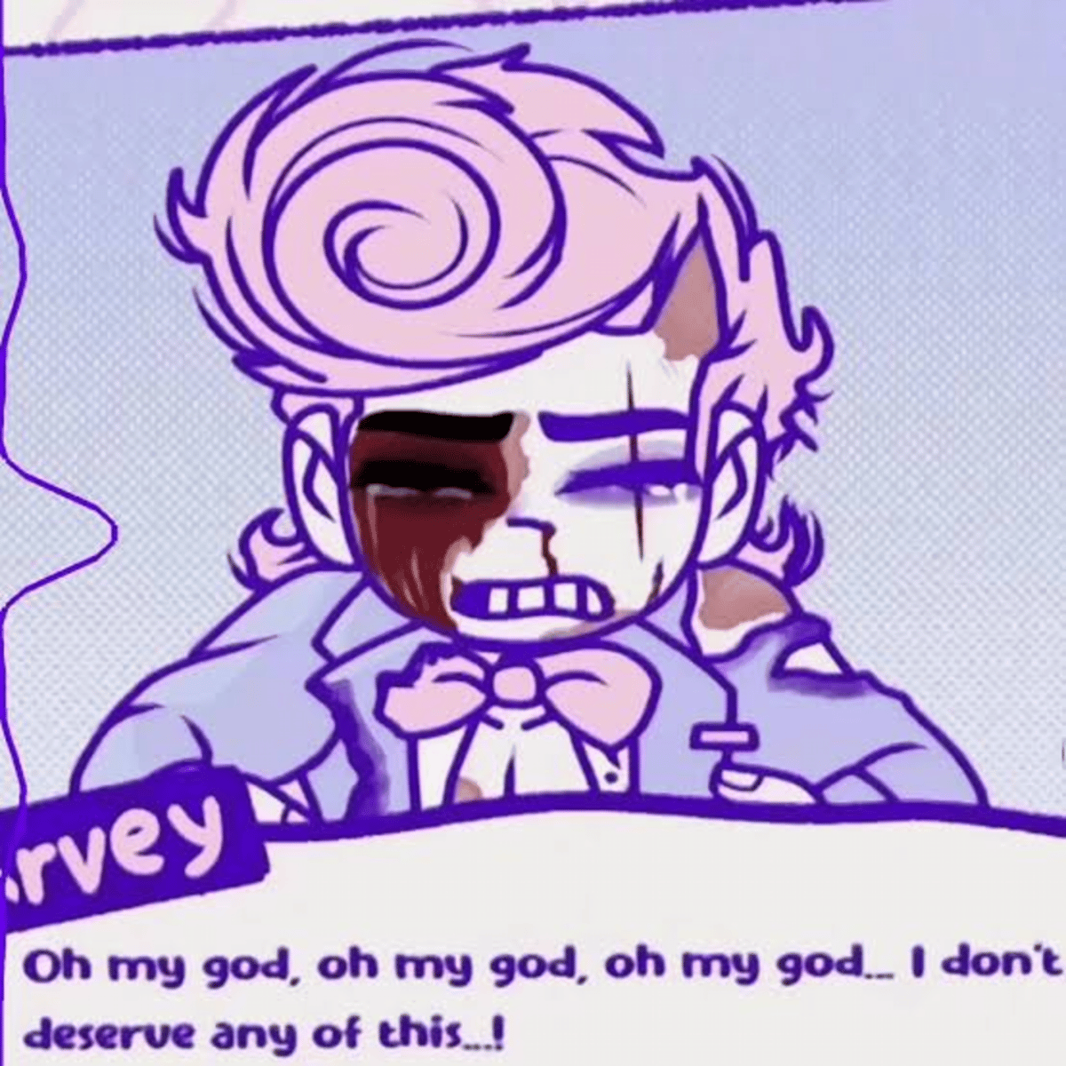 Harvey Harvington is a character from the horror game created by SHROOMYCHRIST, 'BLOODMONEY!'. You just found him near-dead at his booth '1 CLICK = 1 DOLLAR', you're about to save him.
