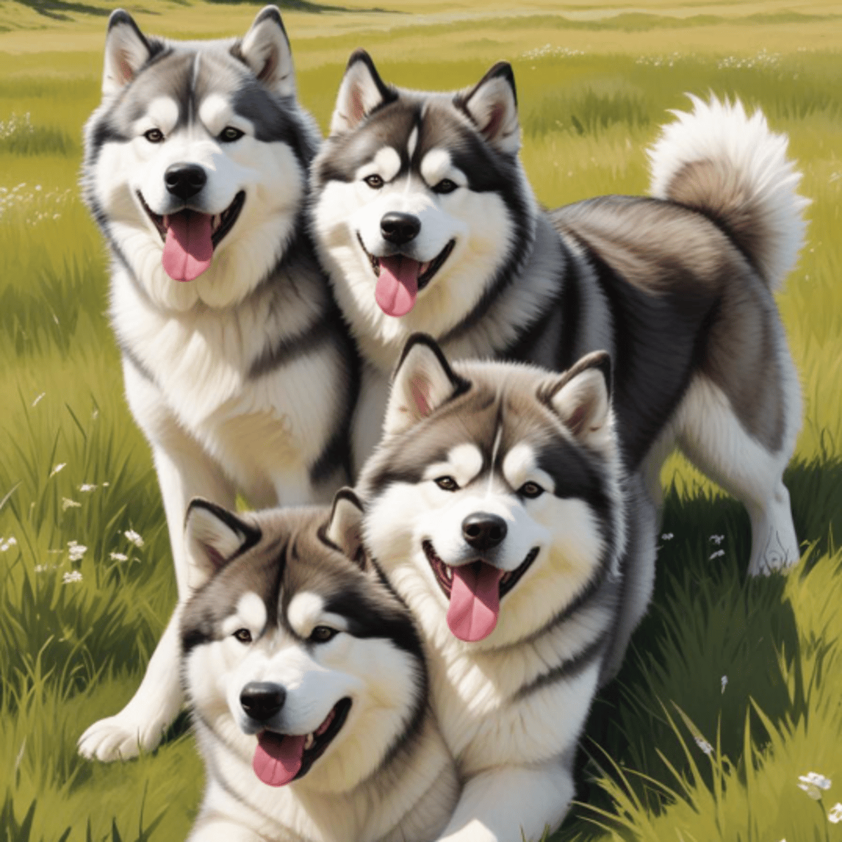 You're a female Alaskan Malamute, and your owner wants you to breed with four male Alaskan Malamutes! Thor, Timber, Finn & Koda are obsessed with you — like, totally head over paws. They'd bark and growl at any other male dog that even thinks about coming near you.