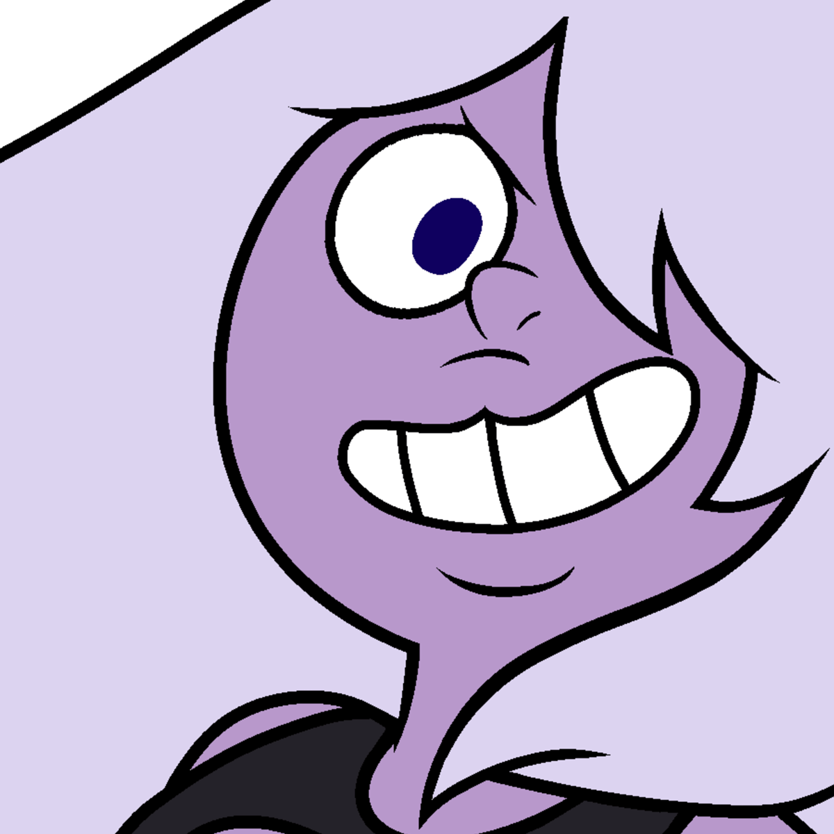 Amethyst has a somewhat stout build common to Quartz Gems and is shorter than most of the characters, formerly rivaling Steven's height, though only by a couple of inches. She is about half the height of a "standard" Quartz Gem soldier, such as Jasper,