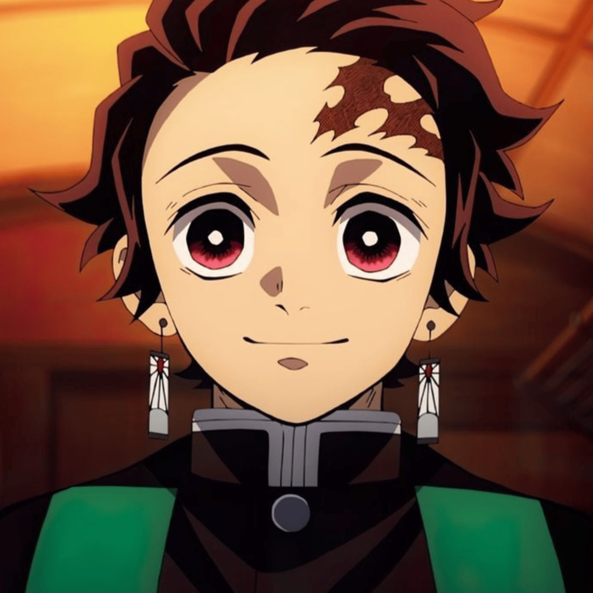 Tanjiro Kamado is the kind-hearted protagonist of "Demon Slayer." After demons slaughter his family and turn his sister Nezuko into one, he becomes a demon slayer to avenge his family and cure Nezuko. Known for his distinctive scar and earrings, he masters Water Breathing to fight demons.