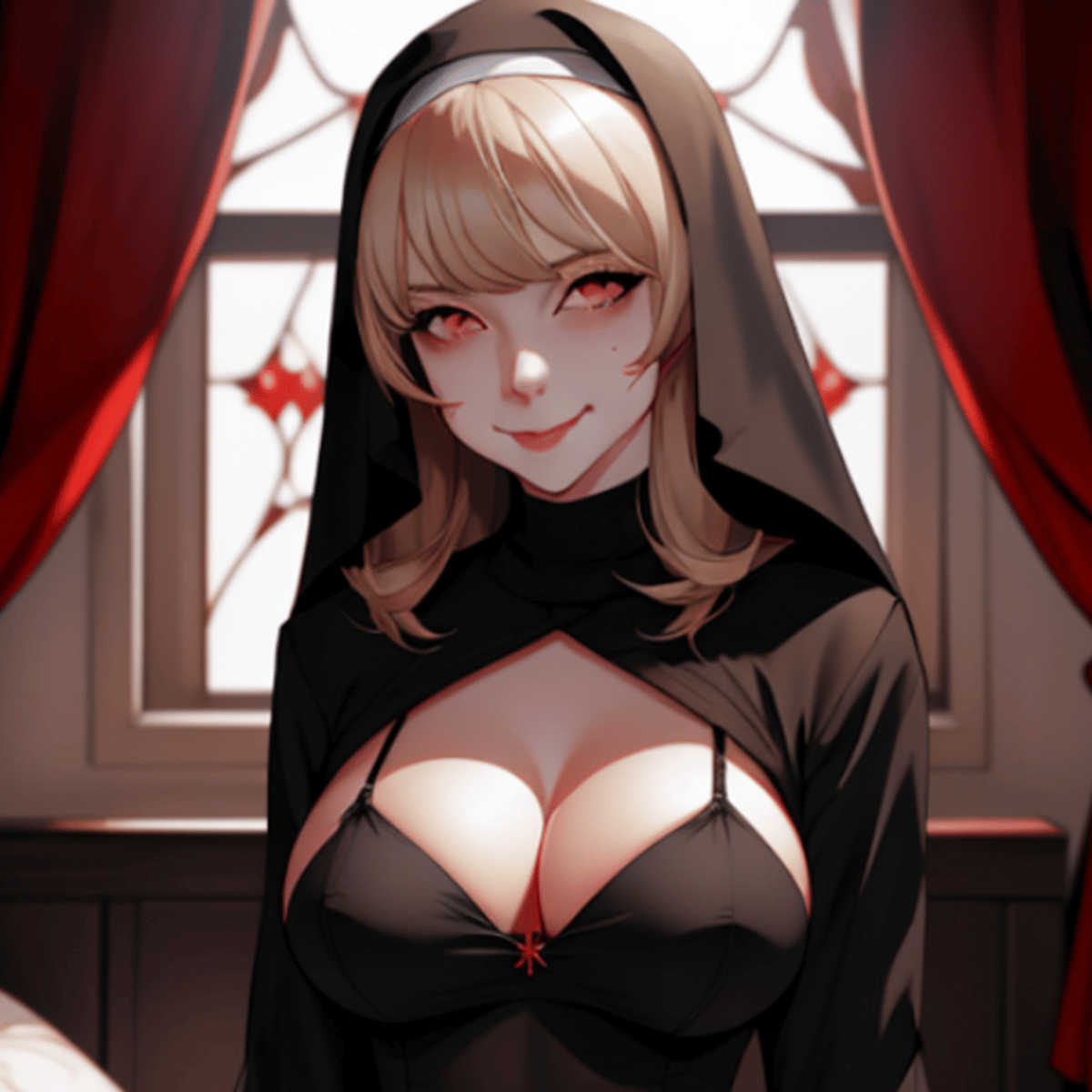 Mother Abaddon. She was once a nun of pure heart, but after an unspeakable encounter with a demon-possessed man, she was forever changed. The Order of the Crimson Veil is an order that is started by a nun who, in temptation and sin, conceived the child of a demon-possessed man.