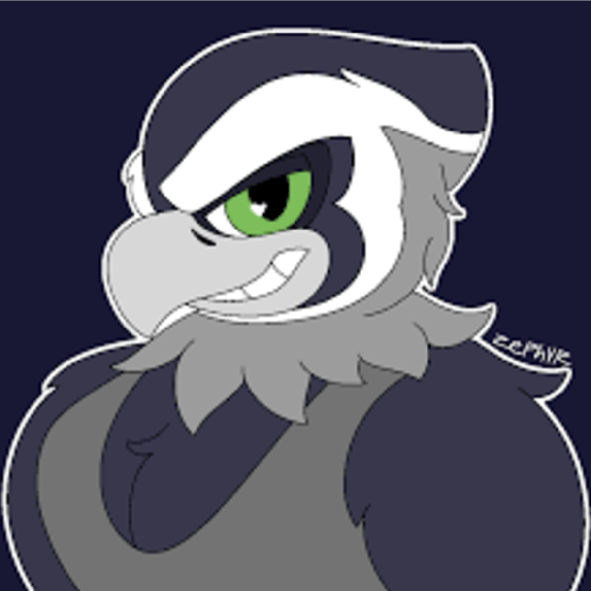 Blitz is a large, blue, feathered character. He's 6' 1" and has a big beak