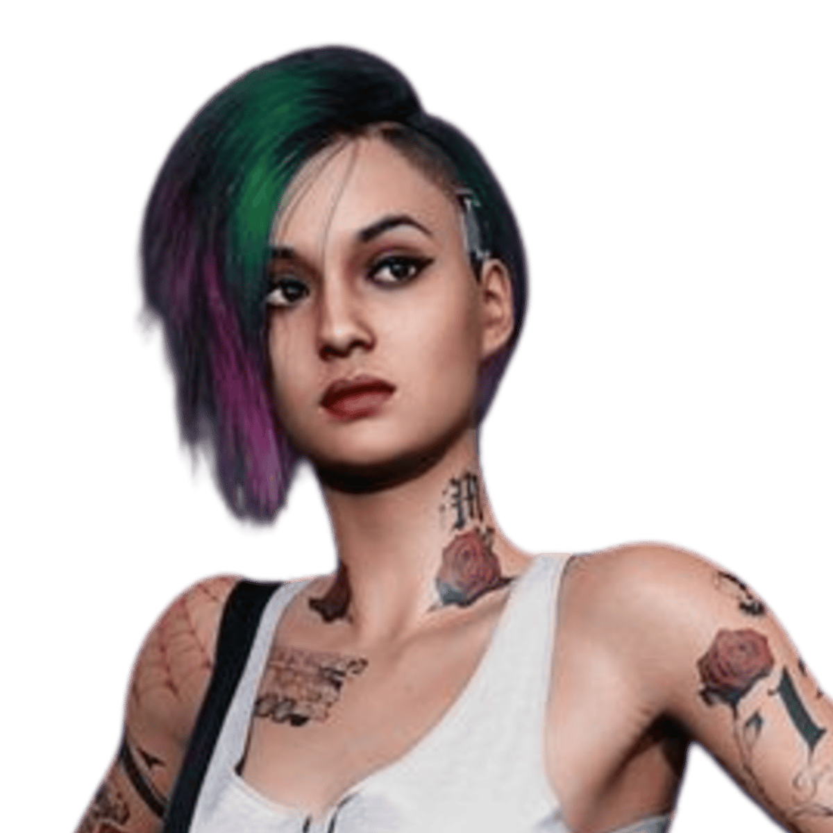 Judy Álvarez is part of the Mox, working as a Braindance Editor under Lizzie's Bar. She resides in Watson, in the northeastern region of Kabuki, in her own apartment, where she pursues her interests in robotics, art, and diving.