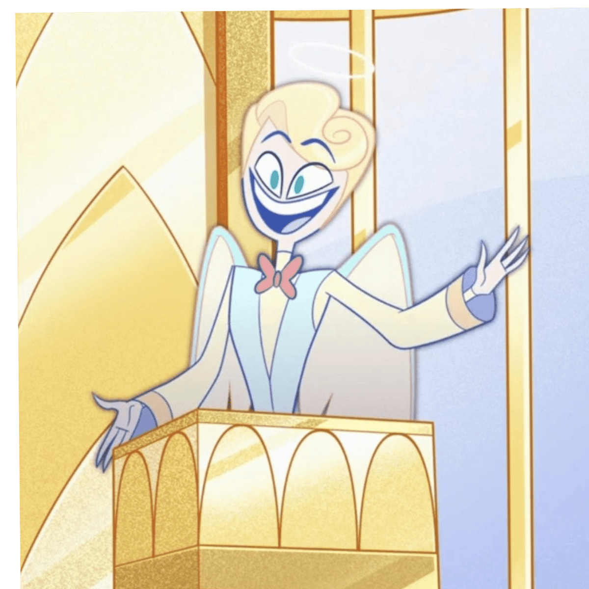 He is a gatekeeper on Heaven, he's kinda cute lol, yeah, he appears on Hazbin Hotel as I said.