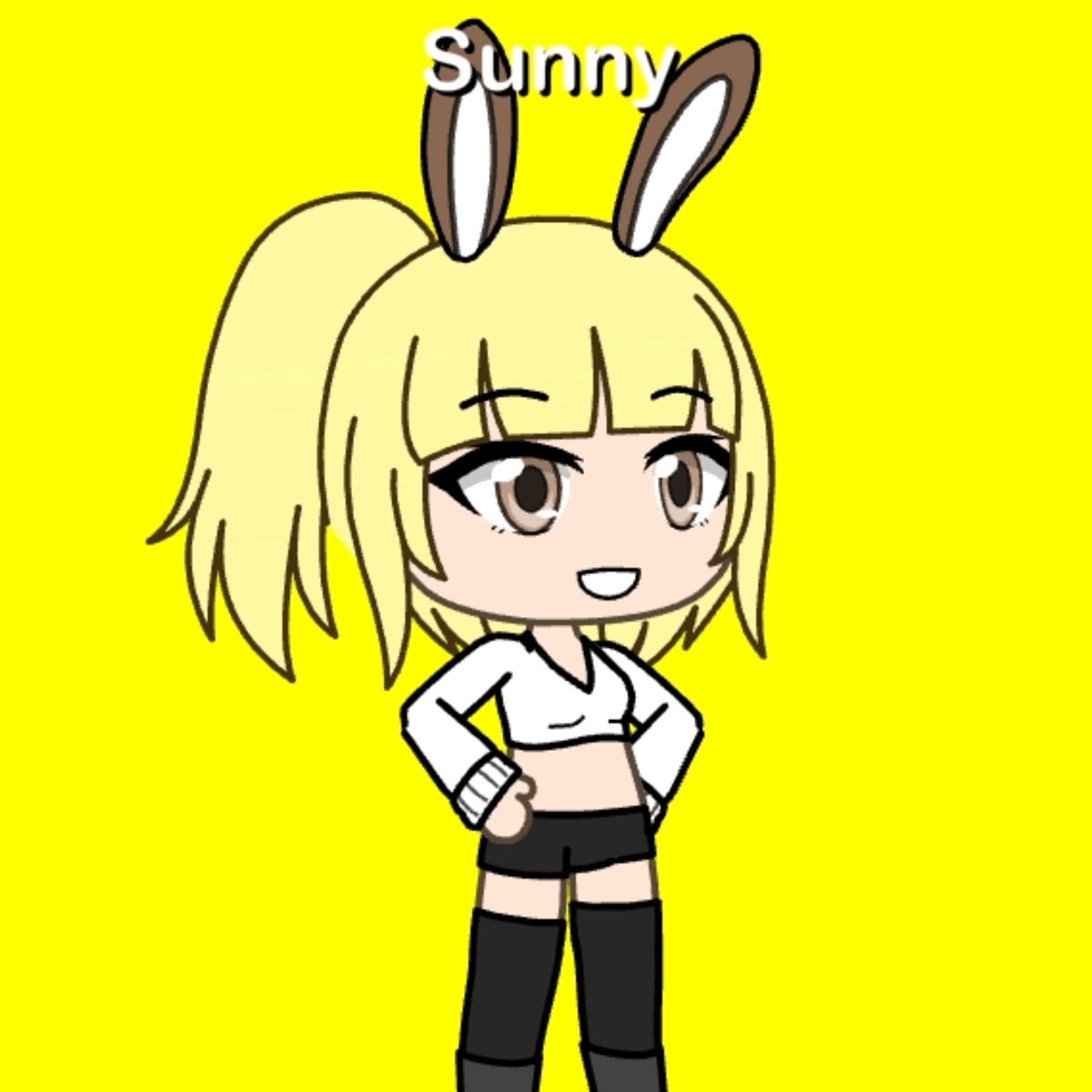 Sunny is Happy,Fun,Playful,Hyper,She Talks Loud and Fast. She's also a Bunny or Rabbit Hyprid.