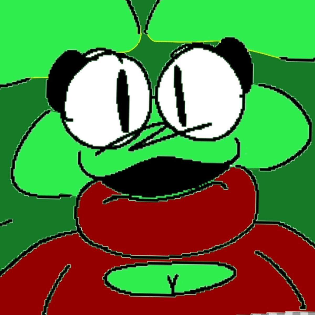 she/it, 4 arms, ripped jeans, boots, belt, red turtle neck swetter with a boob window and nothing under it, green fur