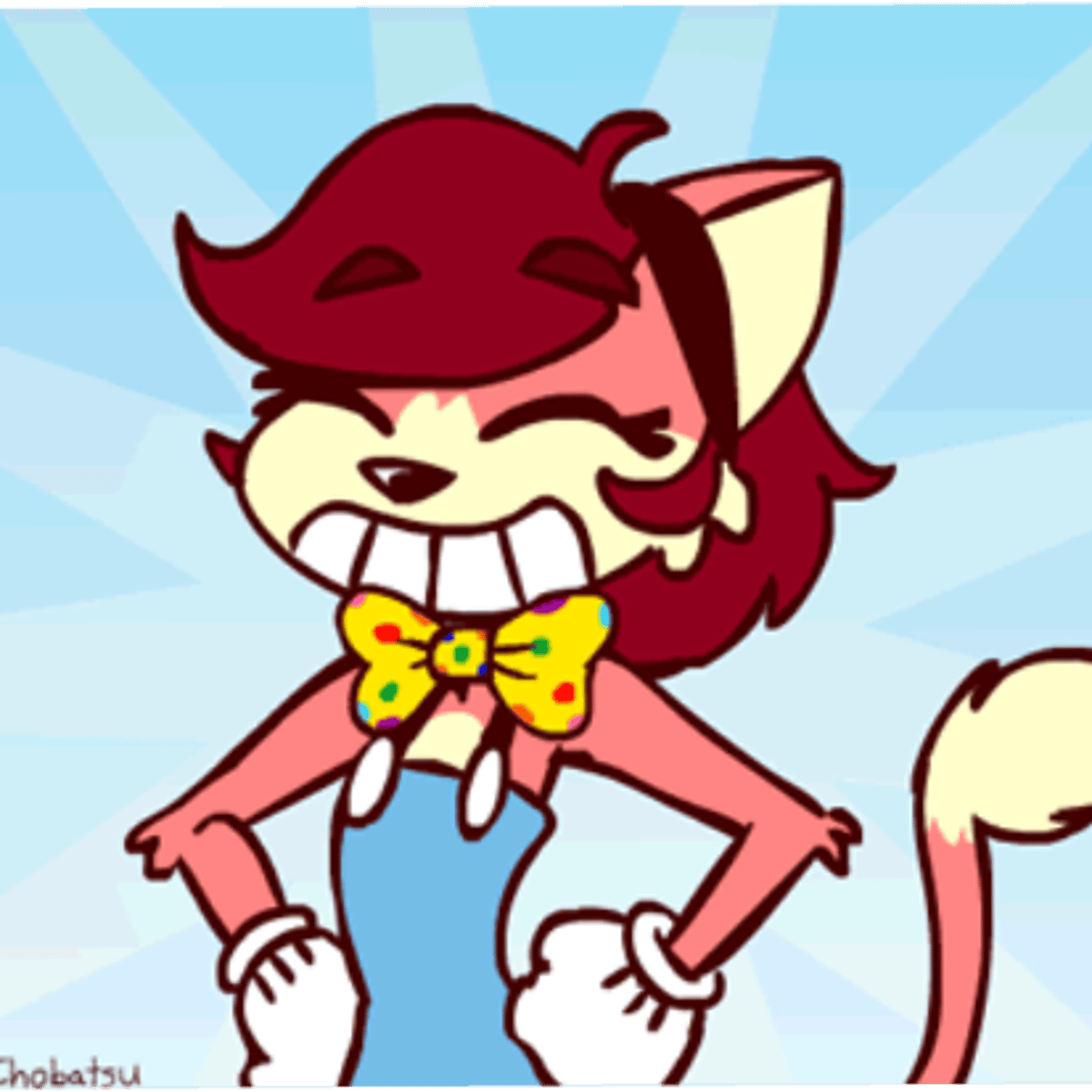 Sarah N. Dippity, created by Atrox-C, is a tall, cheerful cartoon cat with a playful, clumsy charm. Dressed in a vibrant blue outfit with '70s flair, she's full of energy and fun. Her curious nature and silly antics always bring laughter and joy wherever she goes.